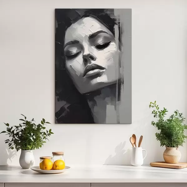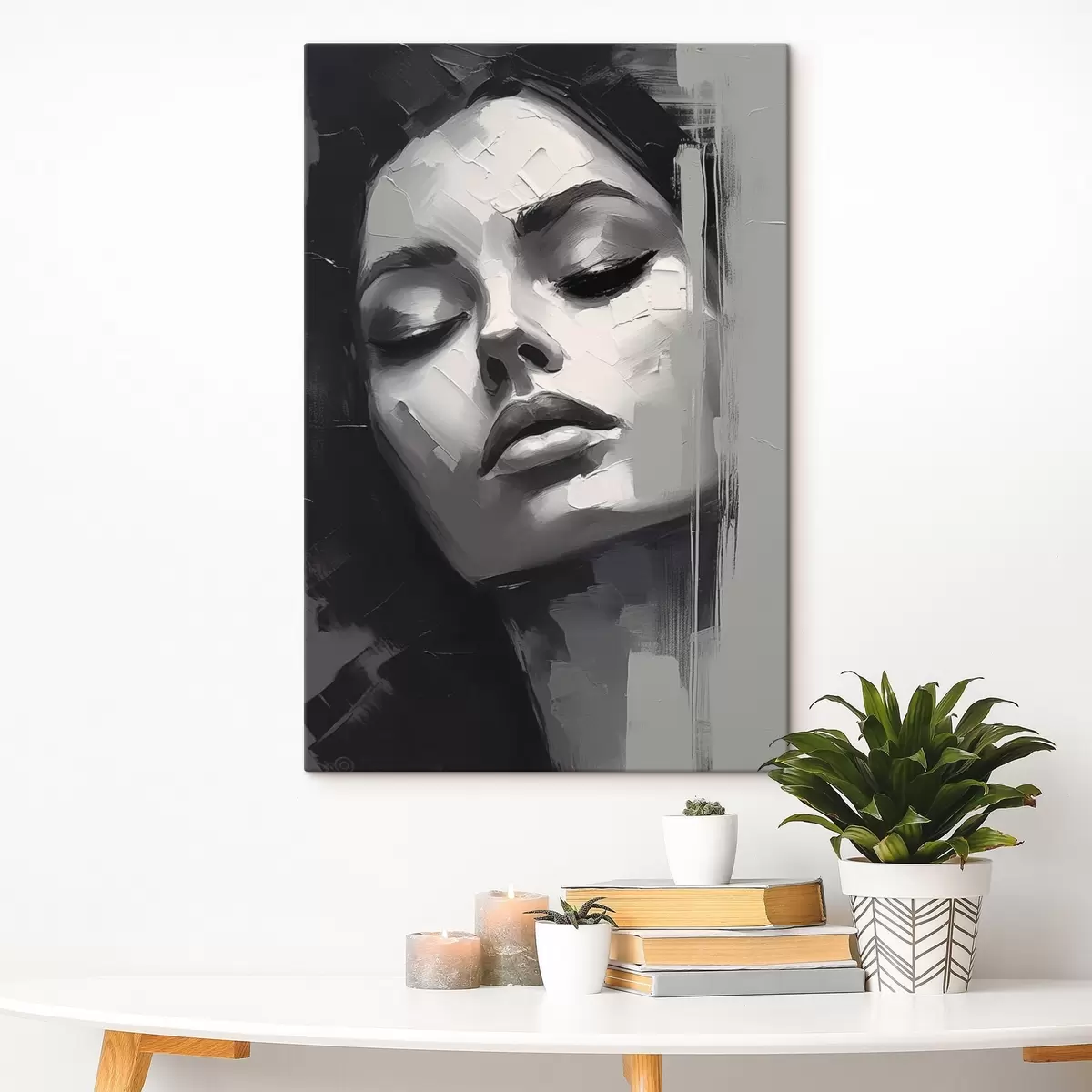 Glezna Melnbalts sievietes portrets ar aizvērtām acīm Nr s45479