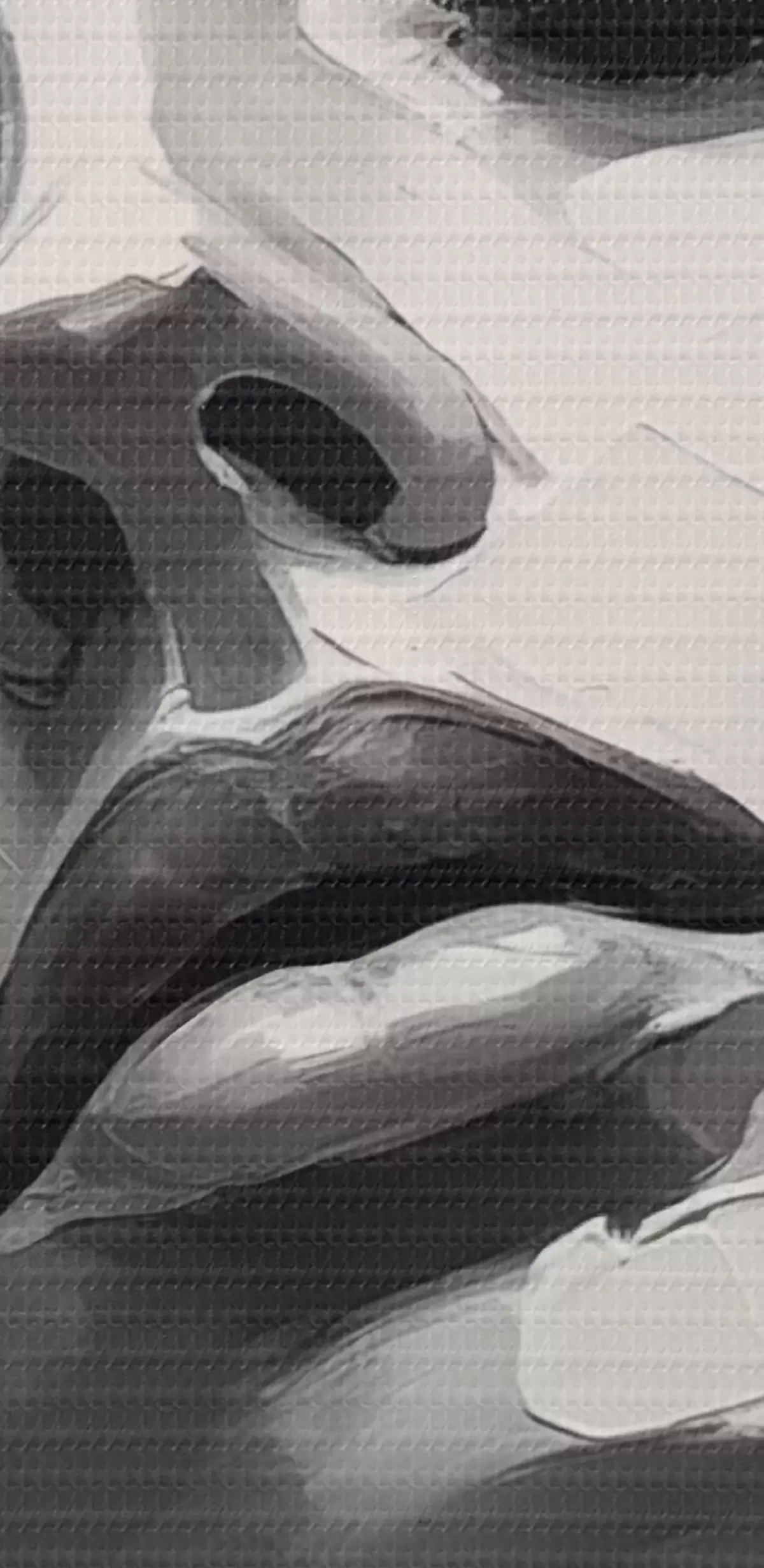 Smalkais diegu pinums uz šī audekla atgādina profesionālu mākslinieku audeklu virsmu.