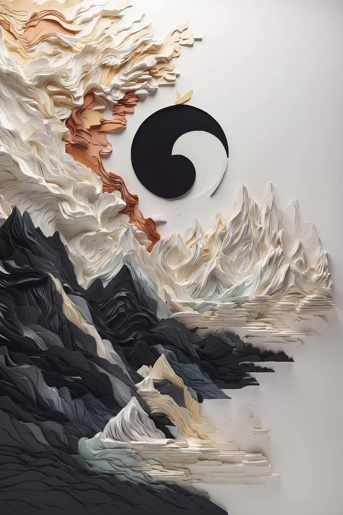 Glezna Abstrakta ainava ar kalniem papīra stilā s45482