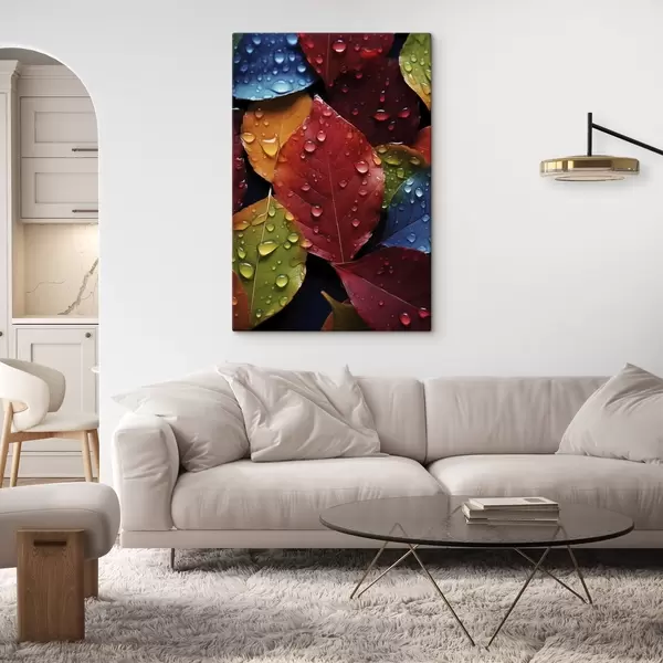 Glezna Krāsainas lapas ar ūdens pilieniem s45516