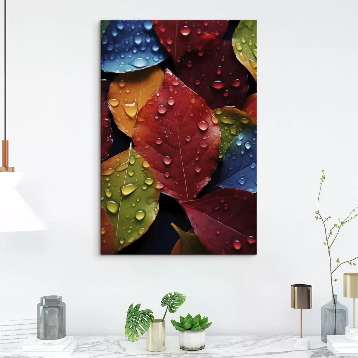 Glezna Krāsainas lapas ar ūdens pilieniem Nr s45516