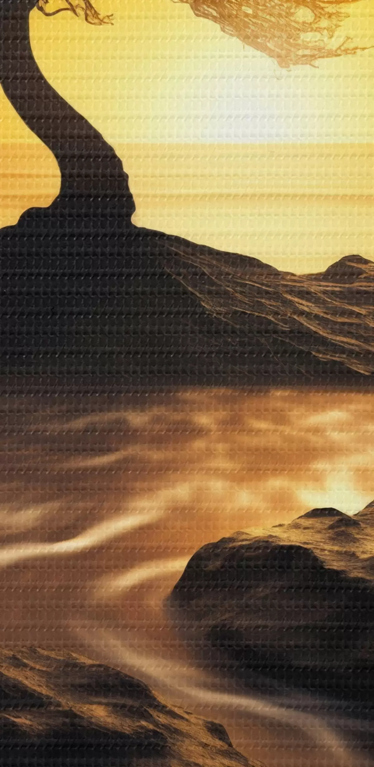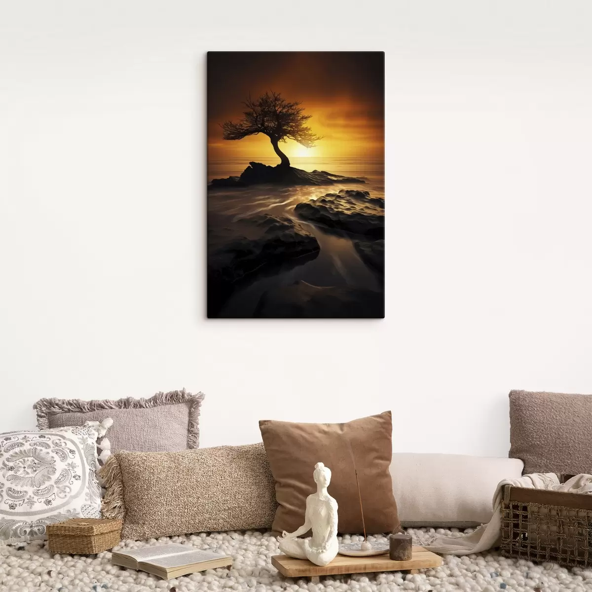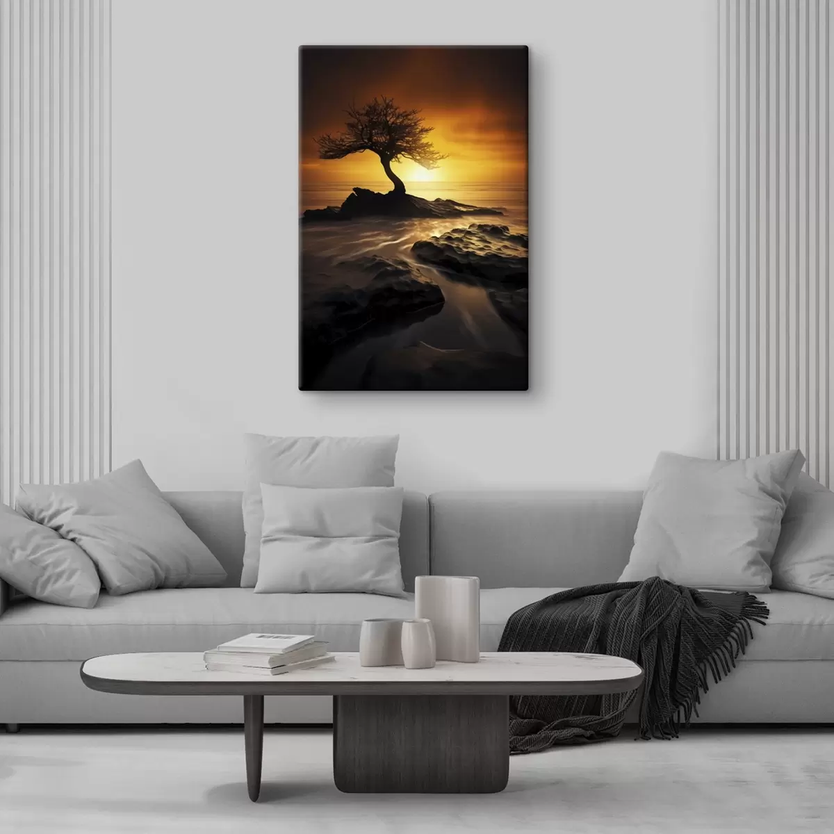 Glezna Vientuļš koks uz klints saulrieta laikā Nr s45524
