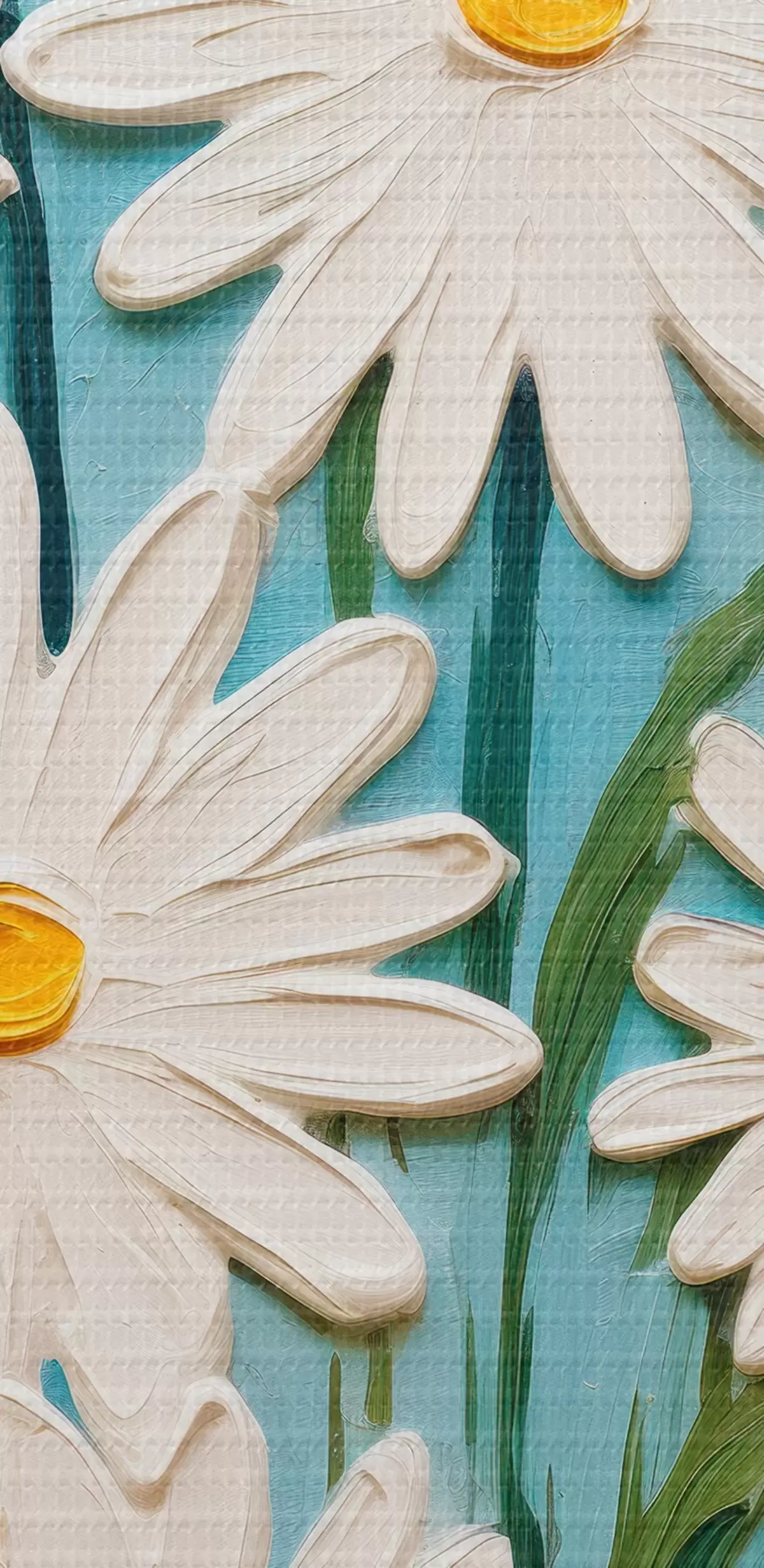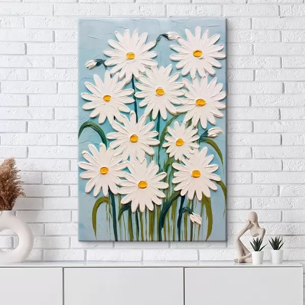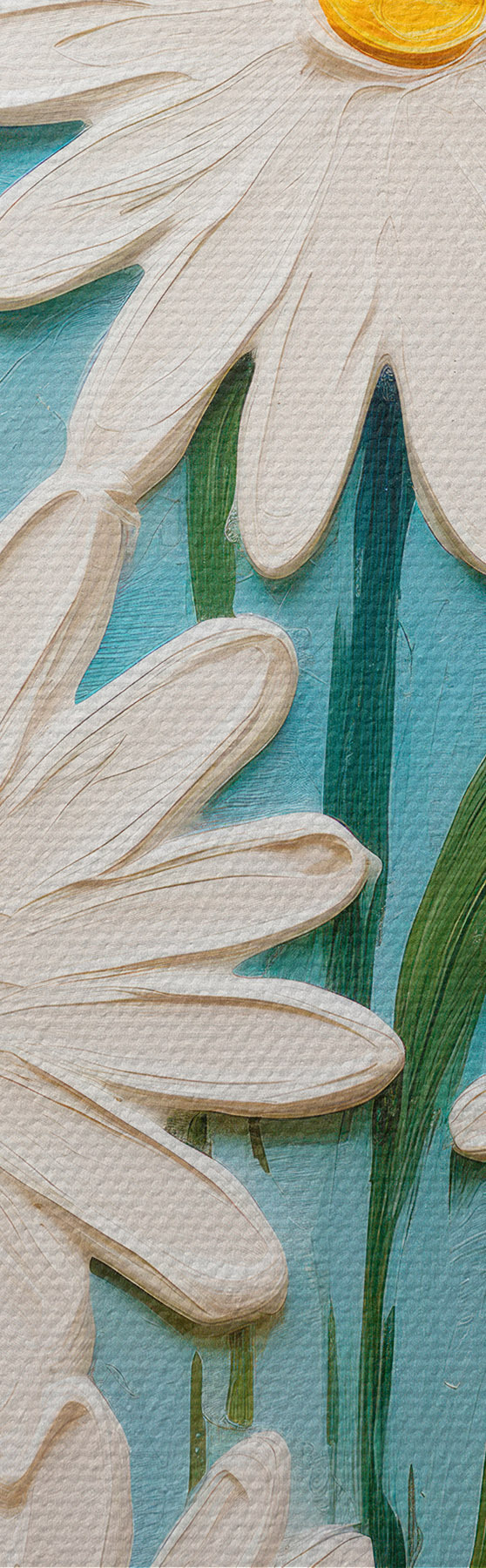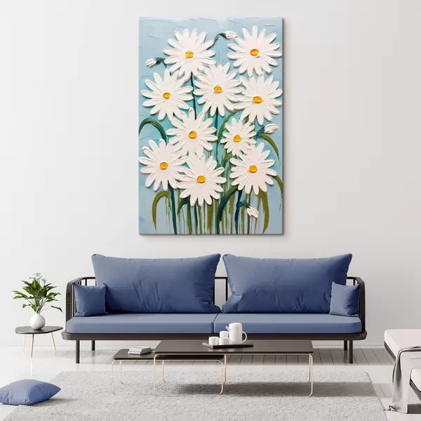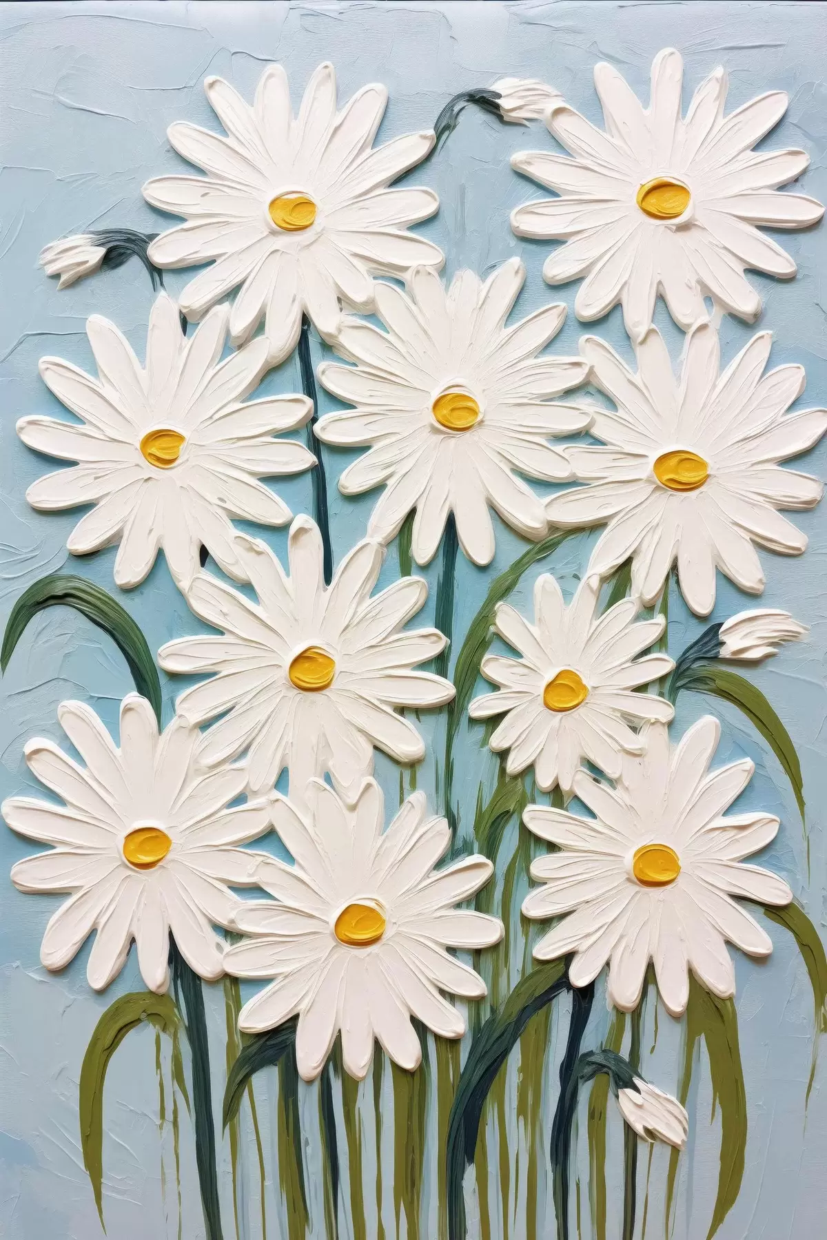 Glezna Margrietiņas reljefa glezniecības stilā: kompozīcija uz zila fona Nr s45527