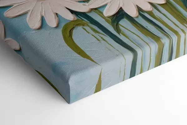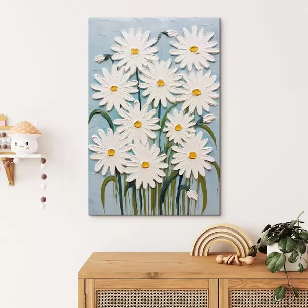 Glezna Margrietiņas reljefa glezniecības stilā: kompozīcija uz zila fona Nr s45527