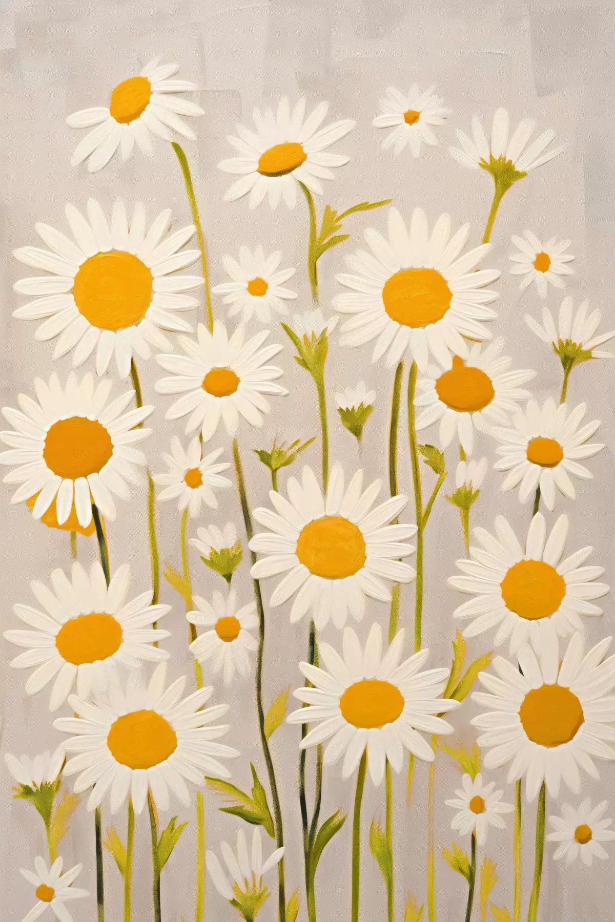 Glezna Savvaļas ziedi: margrietiņu kompozīcija uz gaiša fona Nr s45528