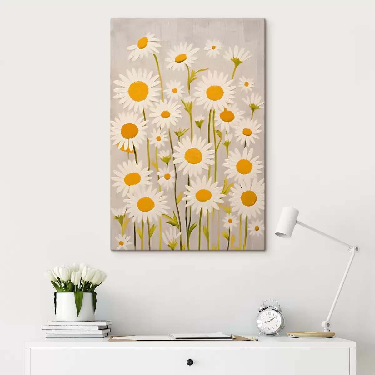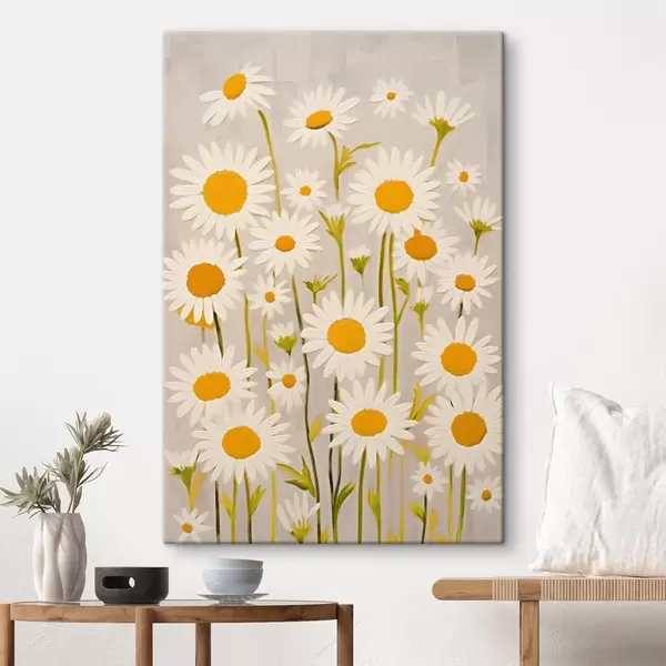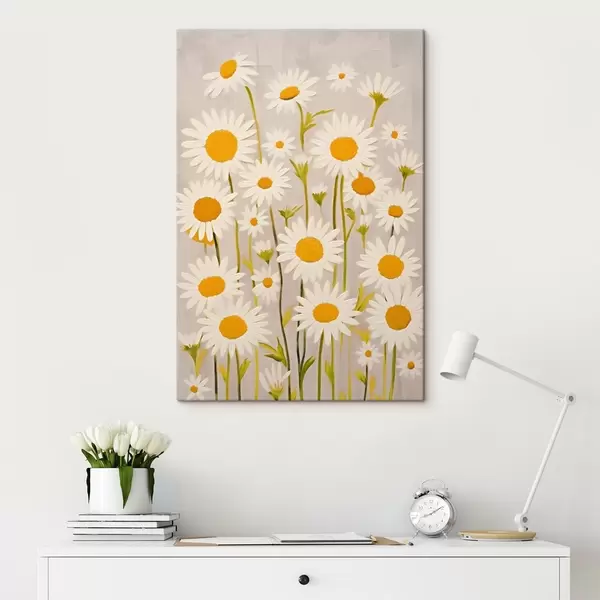 Glezna Savvaļas ziedi: margrietiņu kompozīcija uz gaiša fona s45528