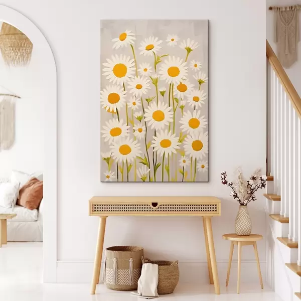 Glezna Savvaļas ziedi: margrietiņu kompozīcija uz gaiša fona s45528