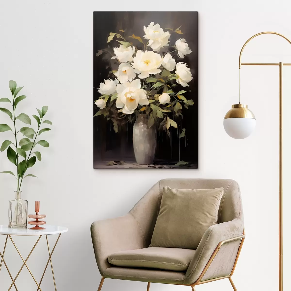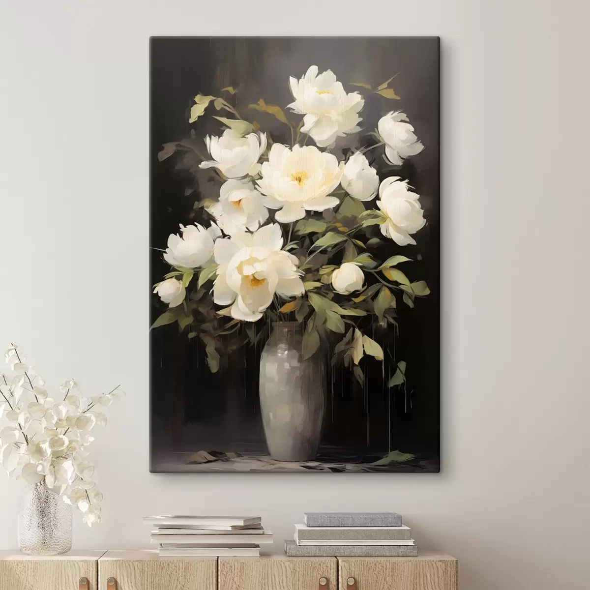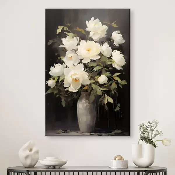 Glezna Delikātas peonijas vāzē: ziedu kompozīcija glezniecības stilā Nr s45532