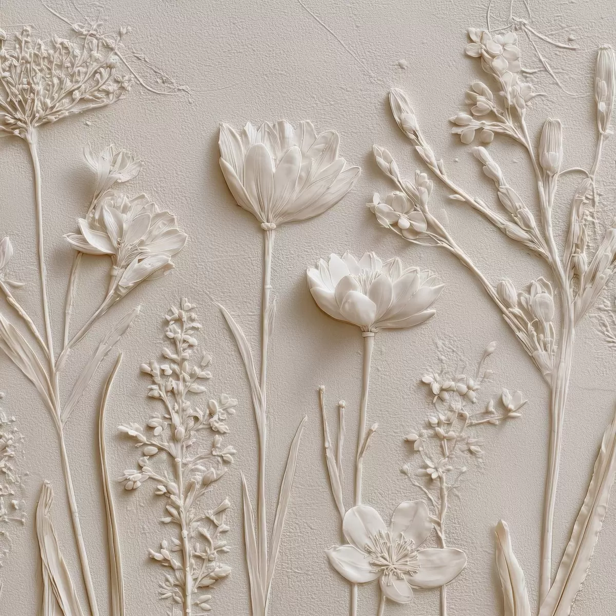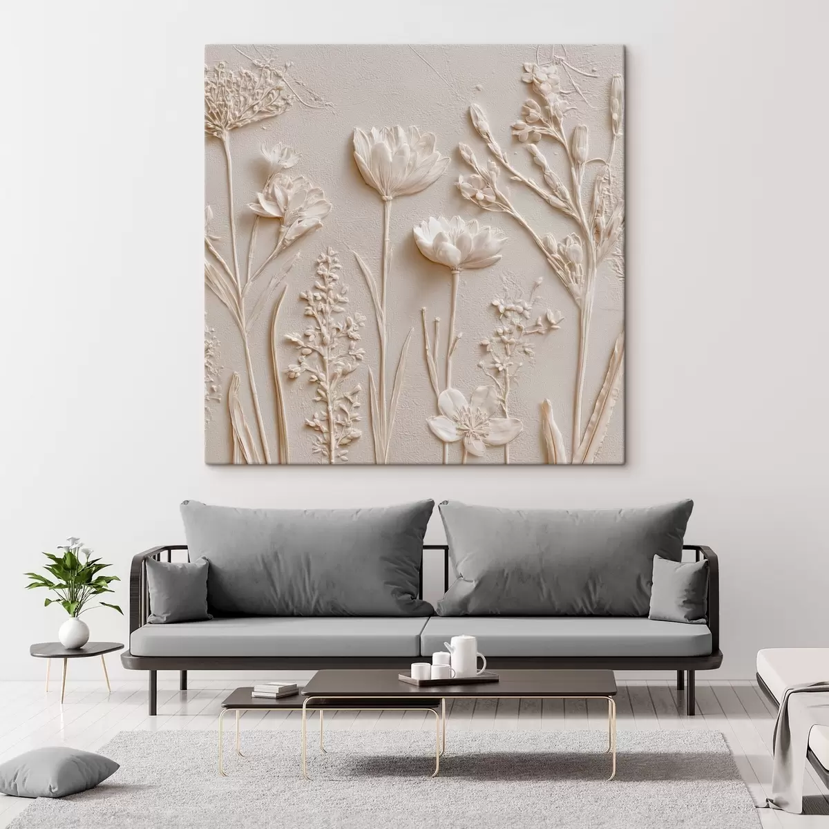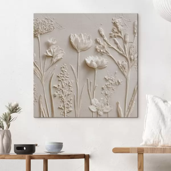 Glezna Abstrakta kompozīcija: bareljefa stilā ar ziediem uz gaiša fona Nr s45535