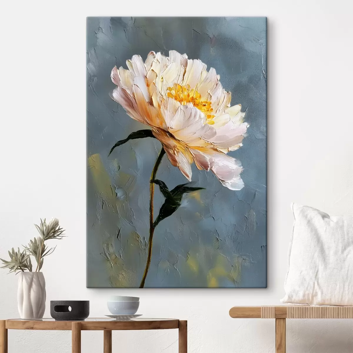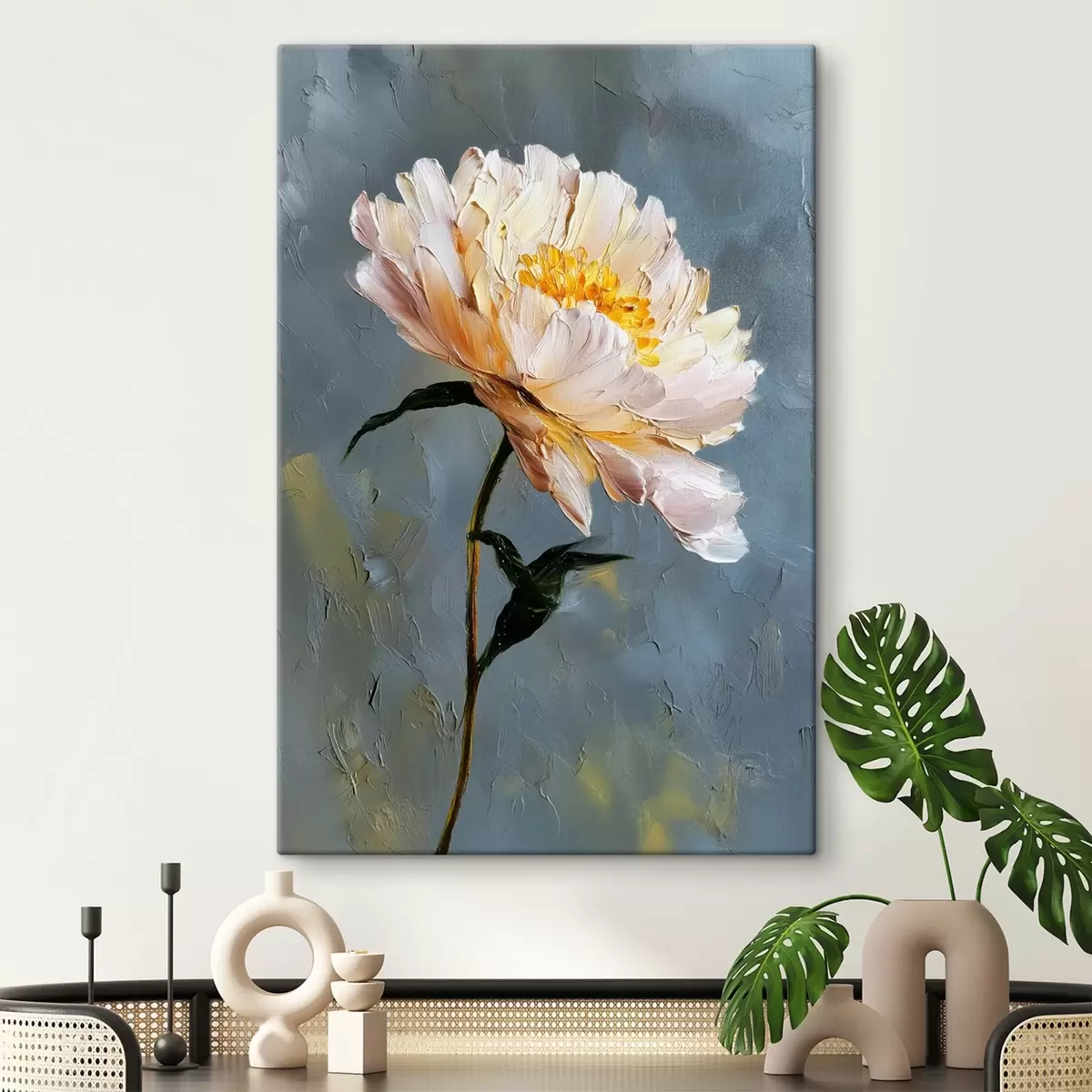 Glezna ir iekārtojama uzreiz pēc tās saņemšanas. Glezna tiks izstiepta uz 2 cm platām koka nestuvēm.