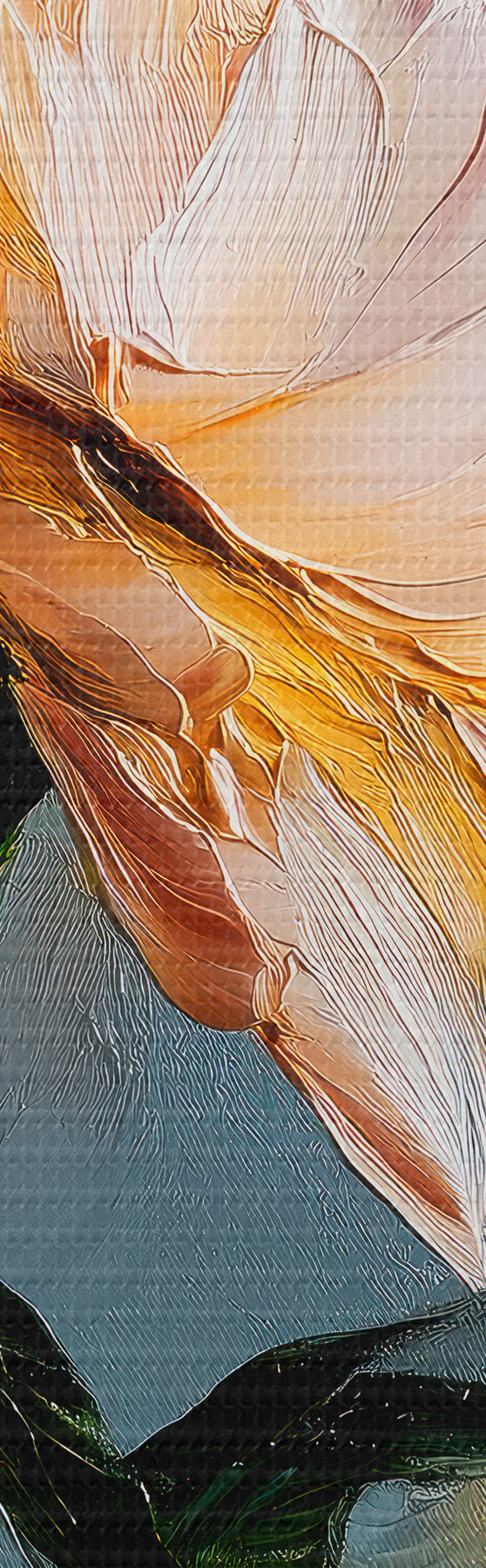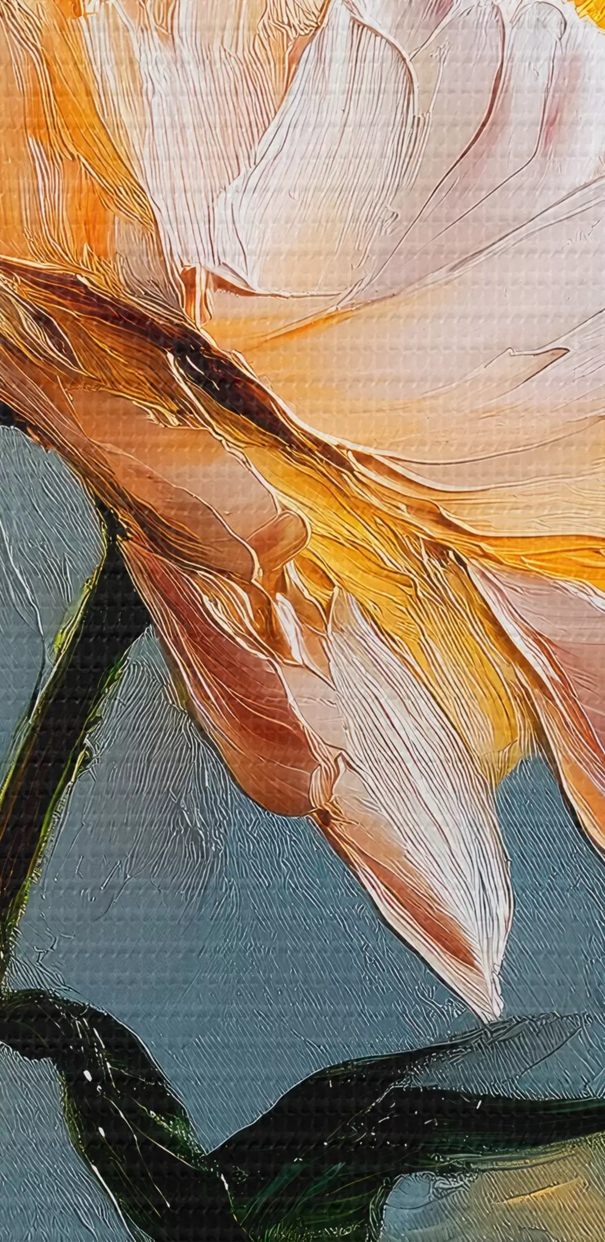 Smalkais diegu pinums uz šī audekla atgādina profesionālu mākslinieku audeklu virsmu.