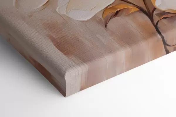Glezna Balti magnolijas ziedi uz mīksta, izplūduša bēša un brūna toņu fona, eleganta ziedu kompozīcija Nr s45571