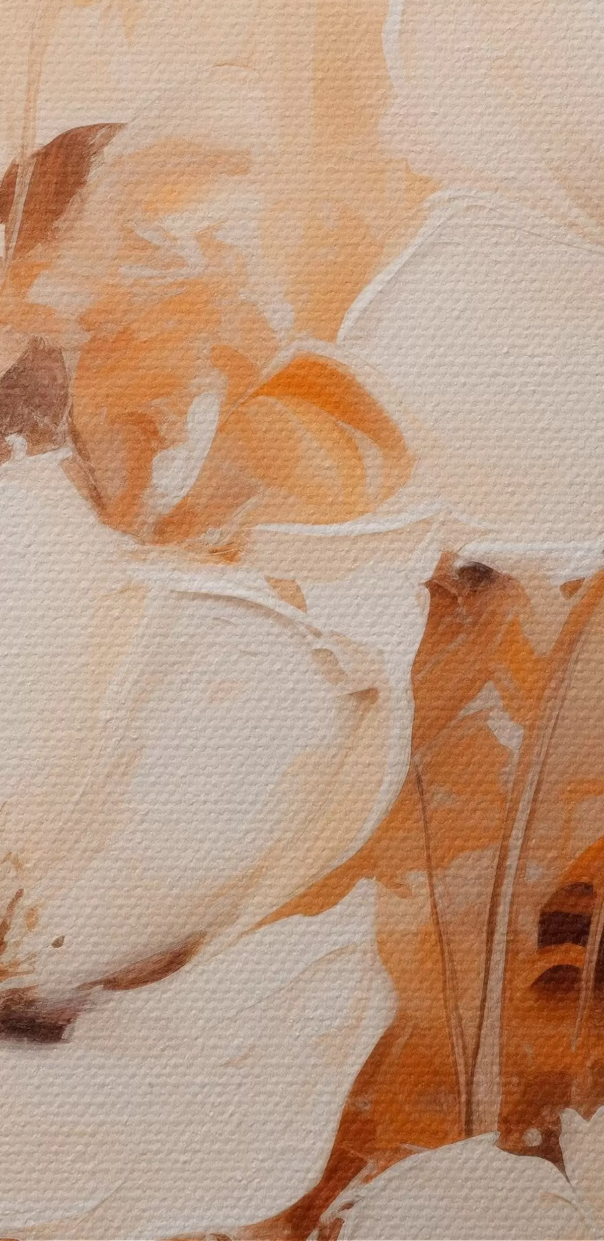 Glezna Balti ziedi ar oranžām lapām, maigi triepieni, silta krāsu palete, eleganta kompozīcija s45573