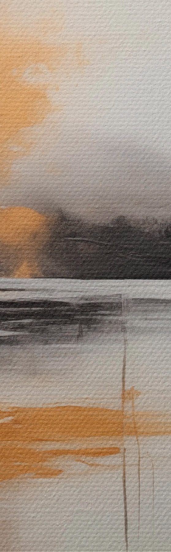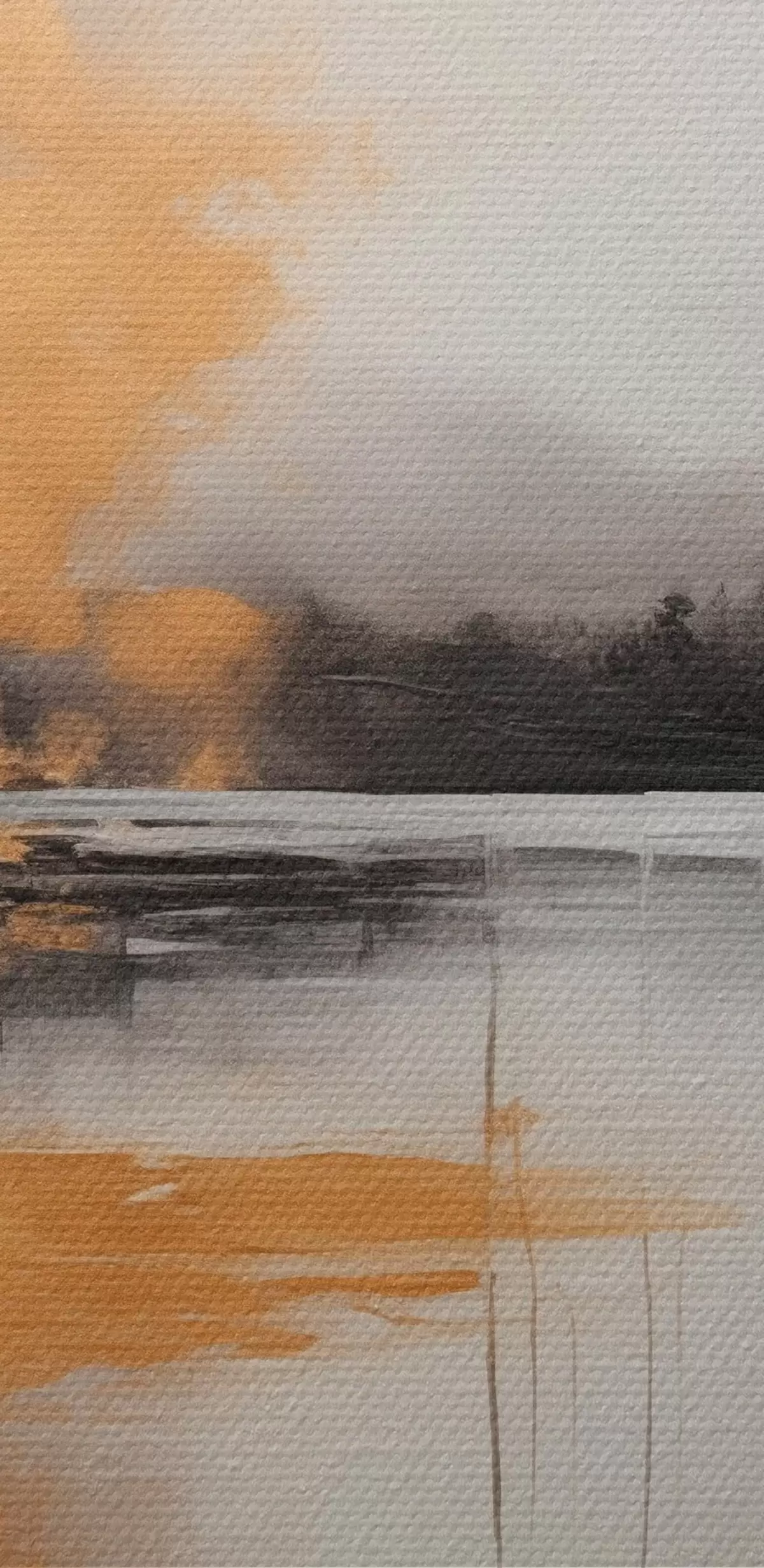 Glezna Abstrakta ainava ar ezeru, koku un dzeltenu miglu , ūdens atspoguļo un mākoņainas debesis Nr s45575