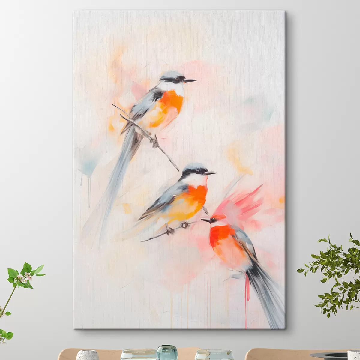 Glezna Putni, kas sēž uz zariem , maigas pasteļtoņi, gaišs fons ar rozā un baltiem toņiem s45577