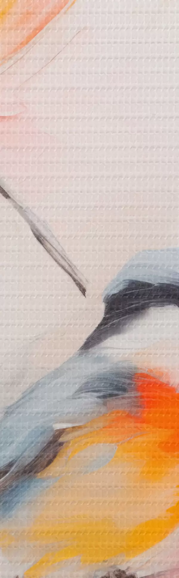 Smalkais diegu pinums uz šī audekla atgādina profesionālu mākslinieku audeklu virsmu.