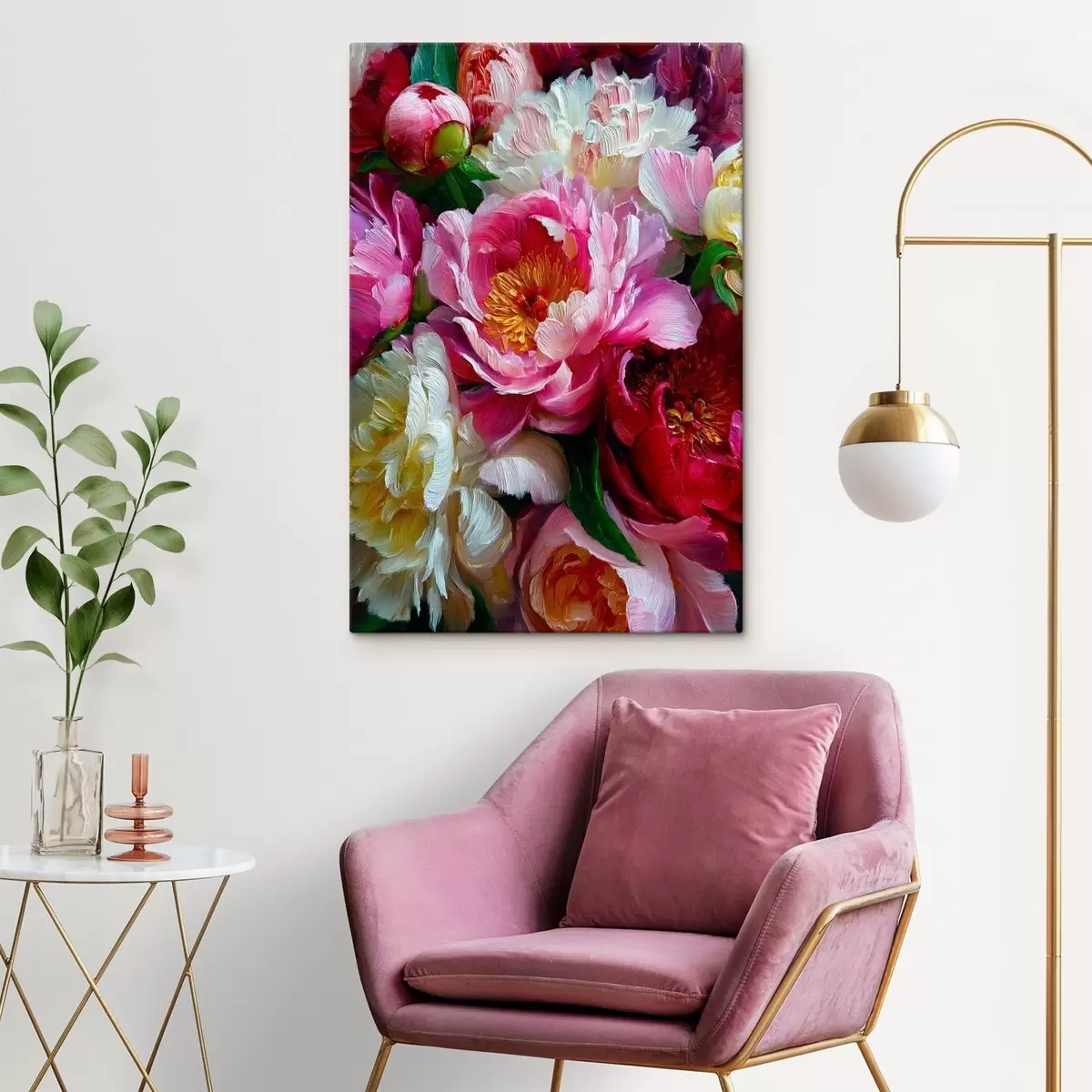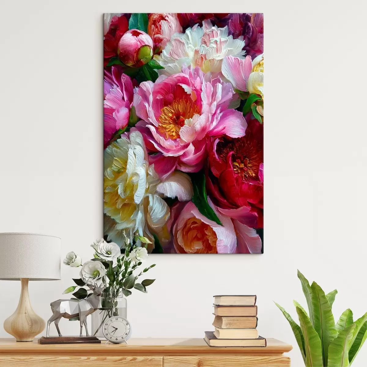 Glezna Sulīgas peonijas impasto tehnikā Nr s45595