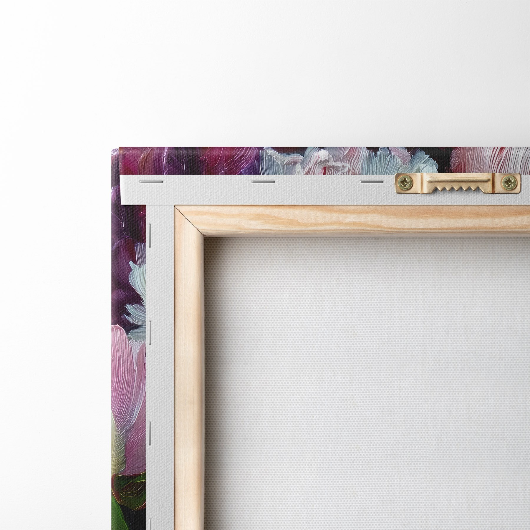 Glezna ir iekārtojama uzreiz pēc tās saņemšanas. Glezna tiks izstiepta uz 2 cm platām koka nestuvēm.