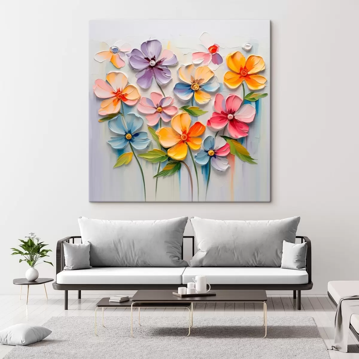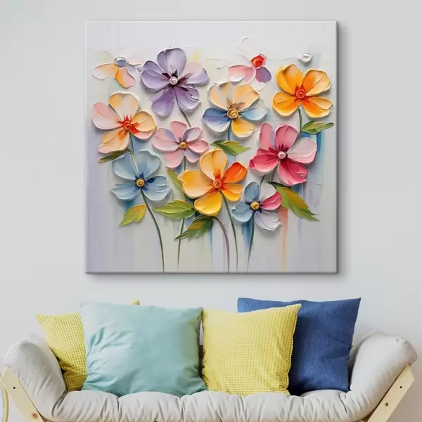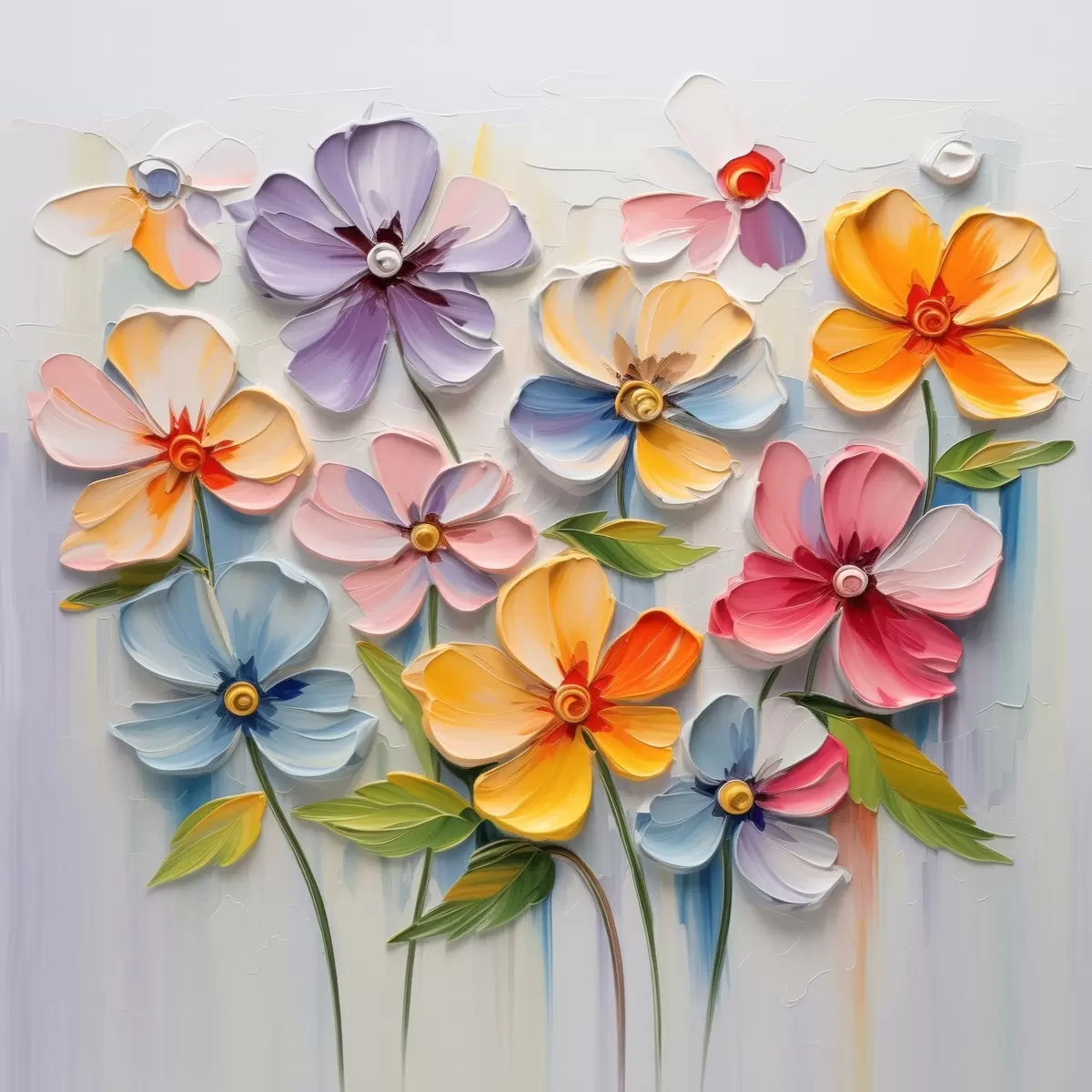 Glezna Ziedu klusā daba: daudzkrāsaini ziedi impasto tehnikā Nr s45598