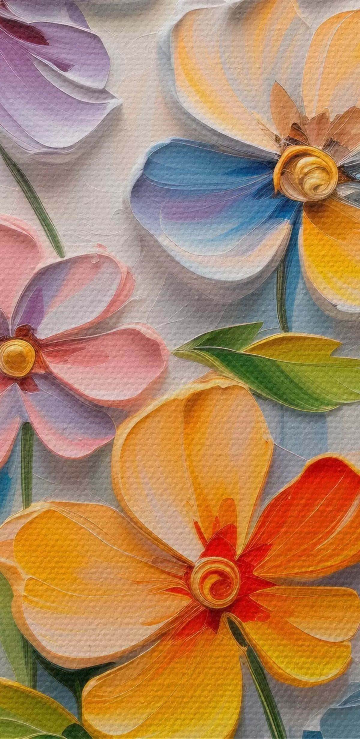 Glezna Ziedu klusā daba: daudzkrāsaini ziedi impasto tehnikā s45598
