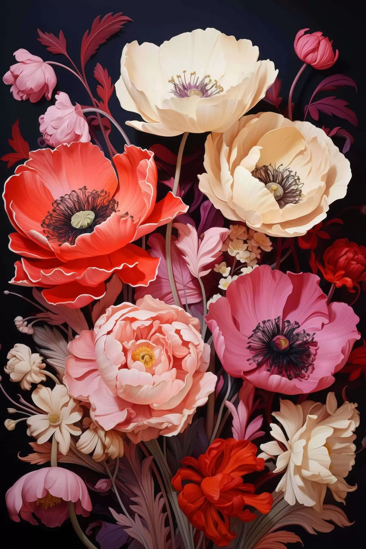 Glezna Rozā un sarkano toņu magoņu pušķis s45600