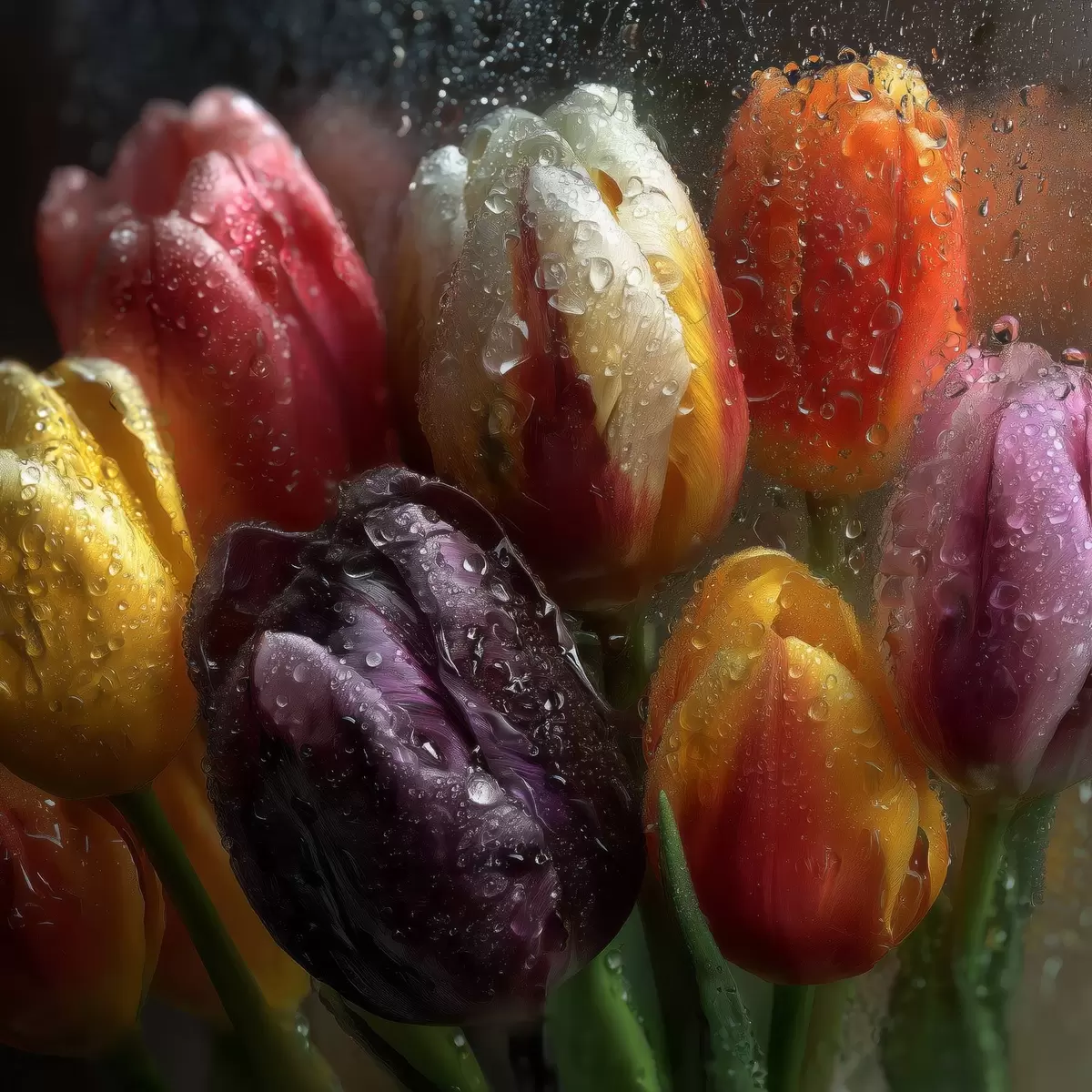Glezna Tulpes lietū: spilgtas krāsas Nr s45642