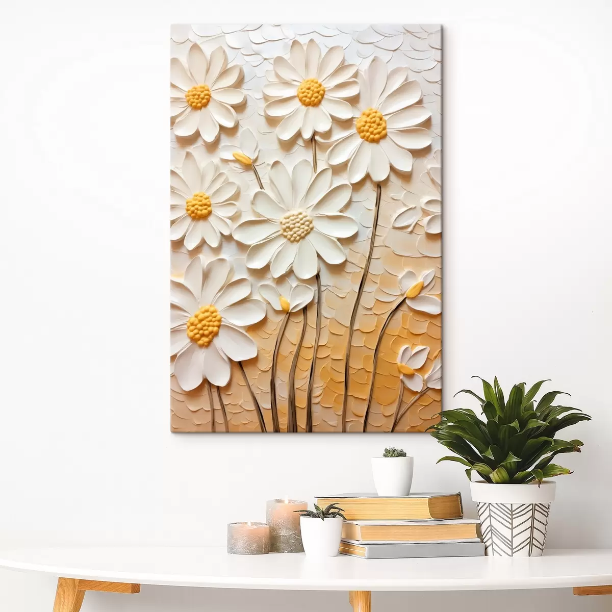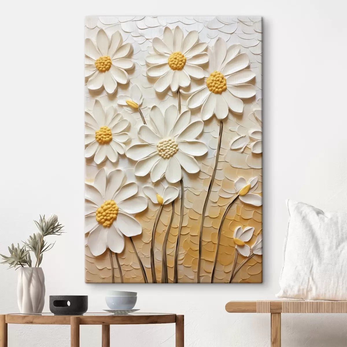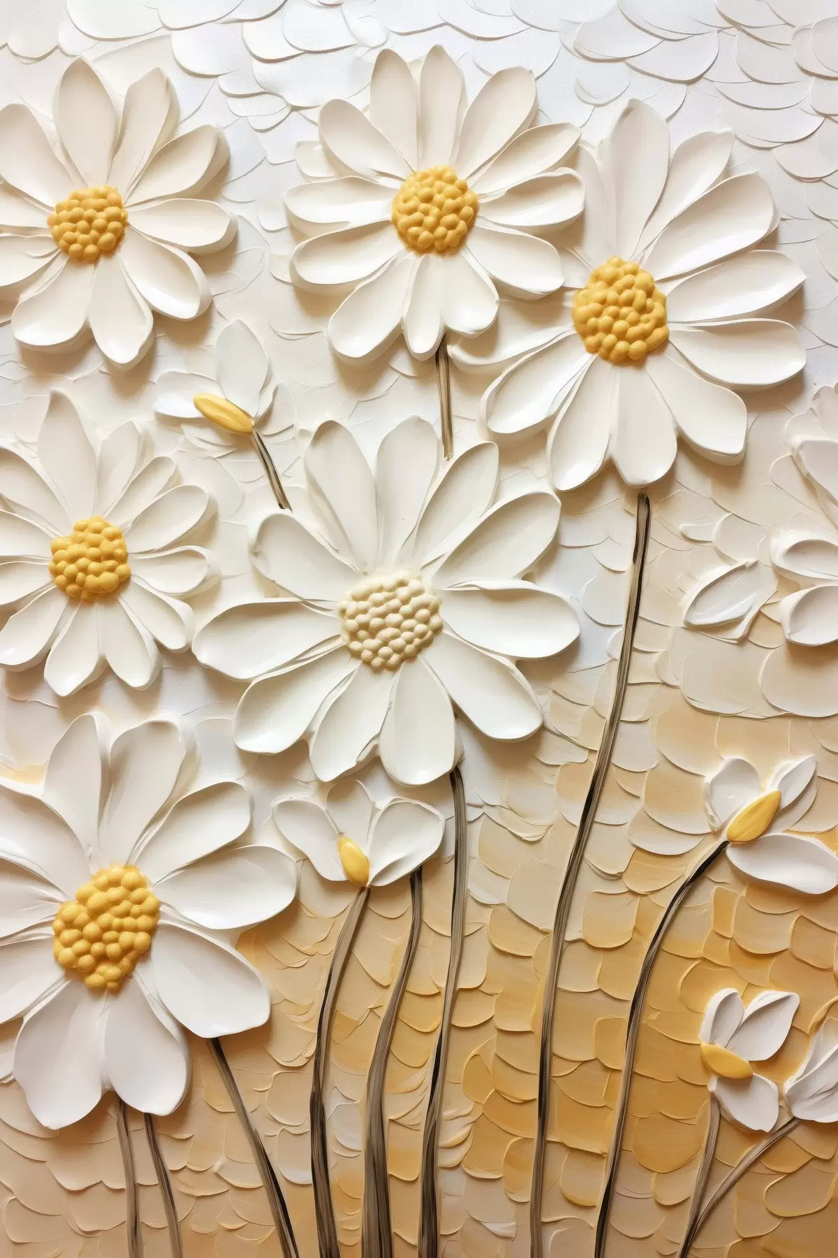 Glezna Margrietiņas impasto stilā: baltas ziedlapiņas Nr s45647