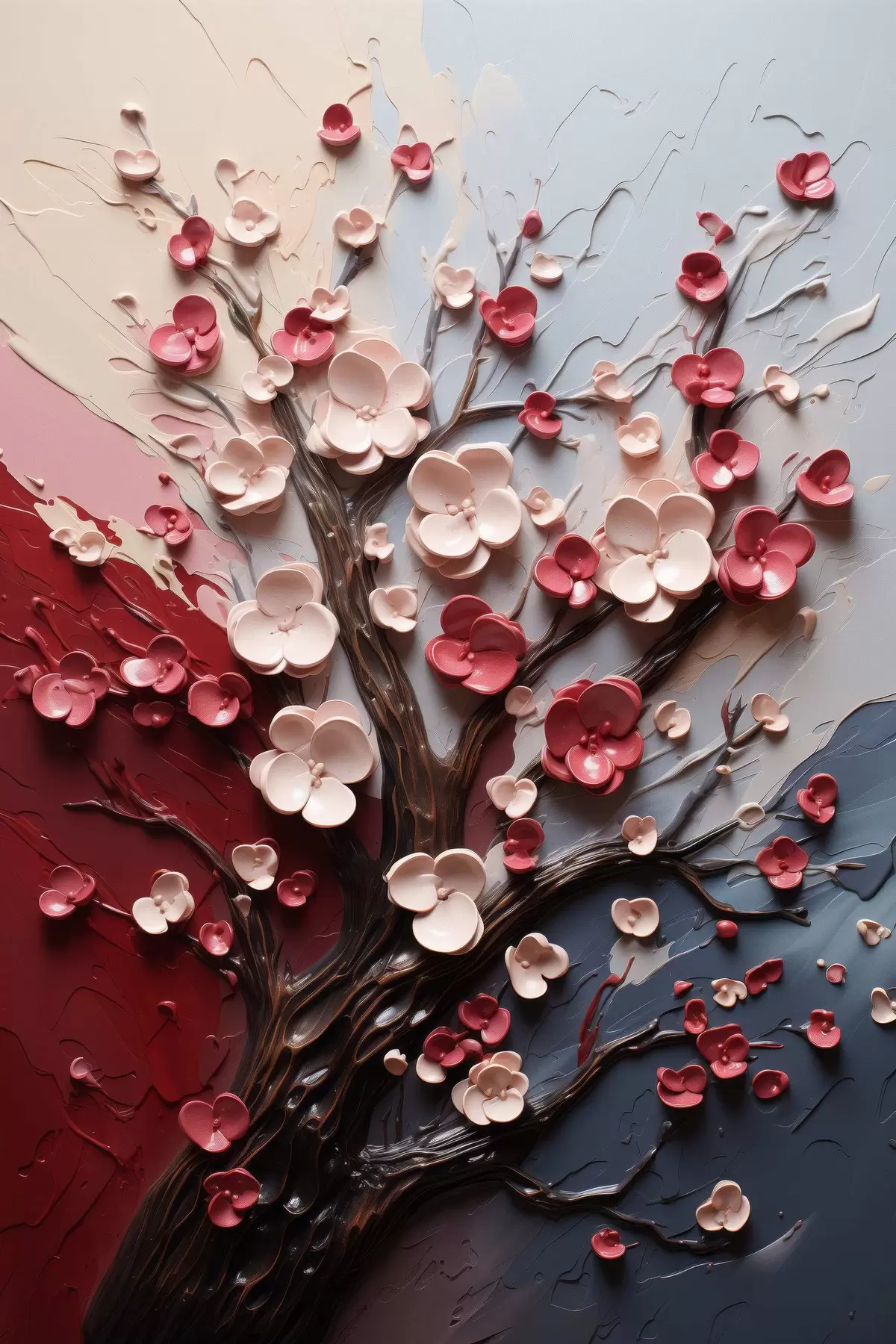 Glezna Teksturētas glezniecības stila apjomīgas sakuras Nr s45650