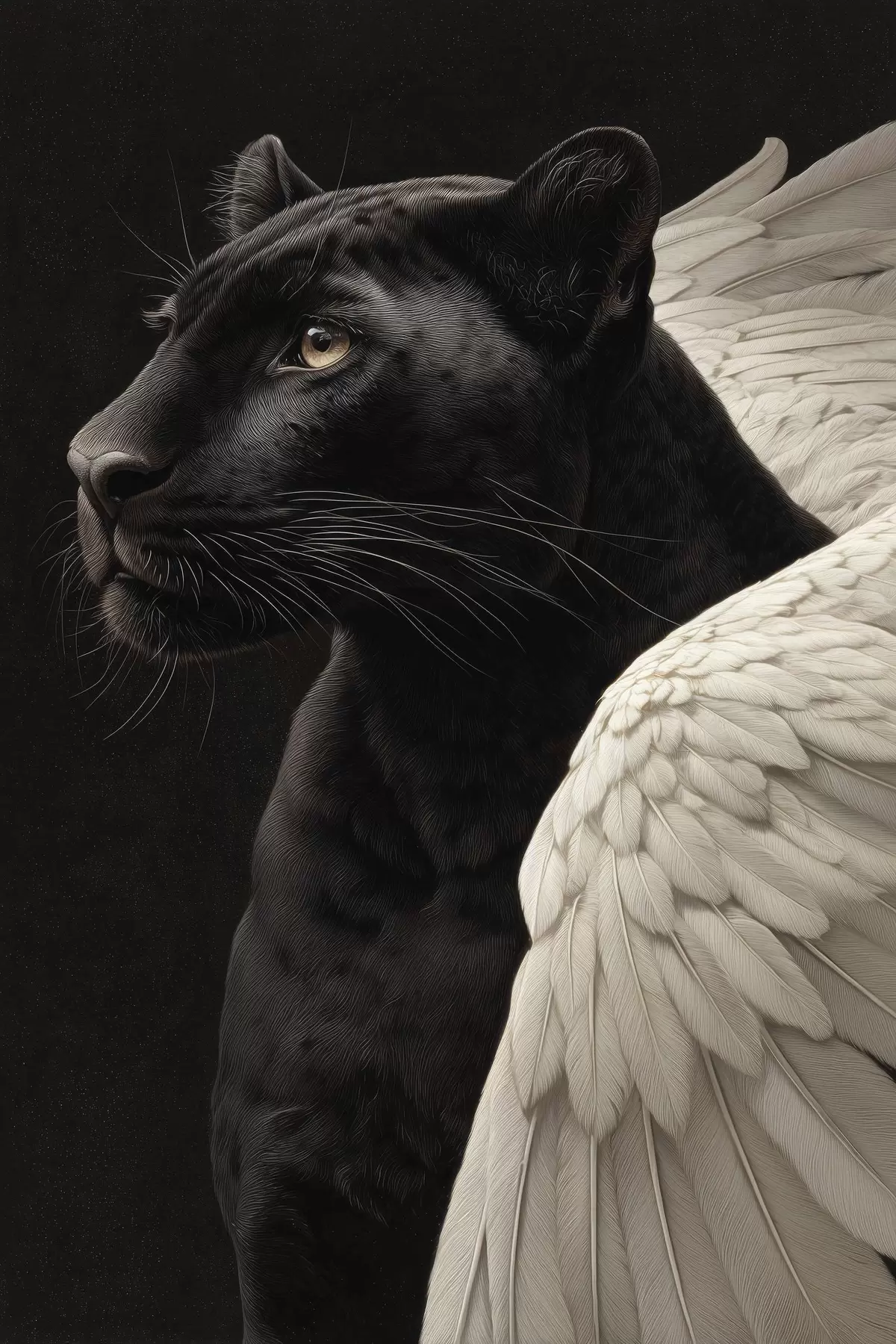 Glezna Melnā pantera ar spārniem fantāzijas stilā Nr s45653