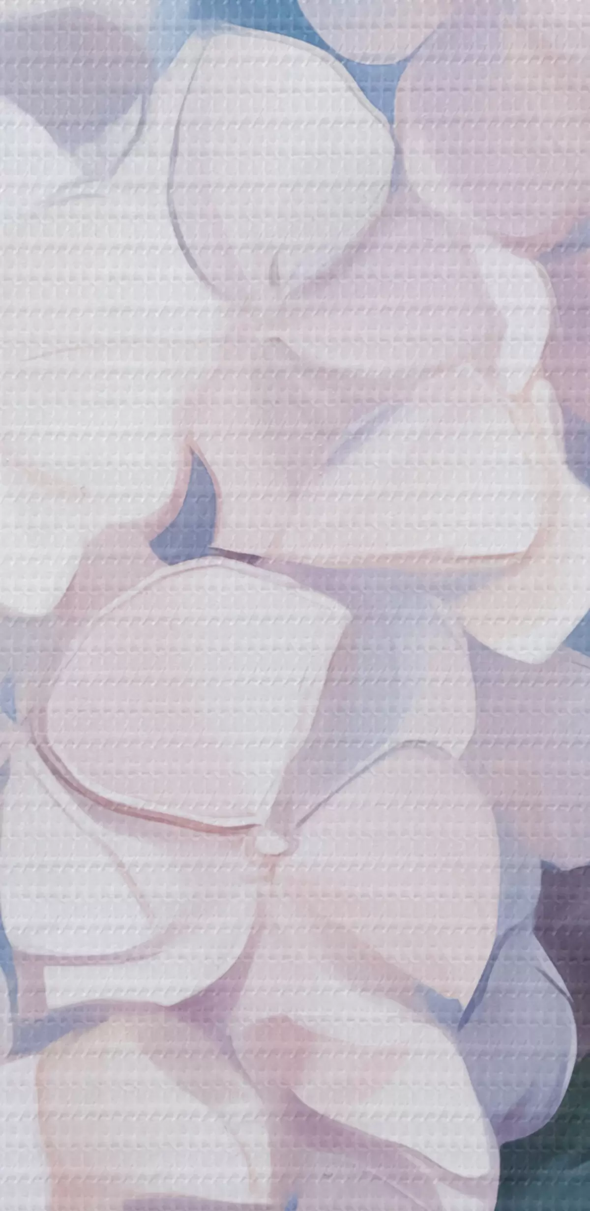 Smalkais diegu pinums uz šī audekla atgādina profesionālu mākslinieku audeklu virsmu.