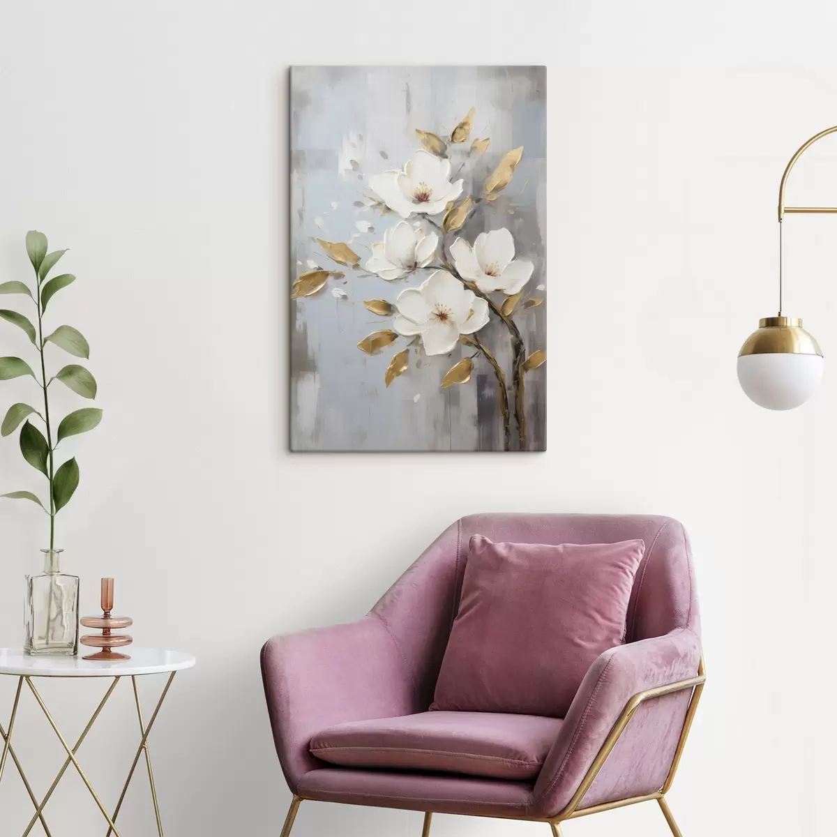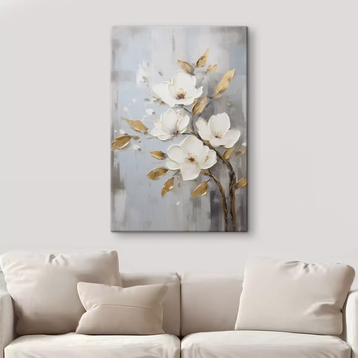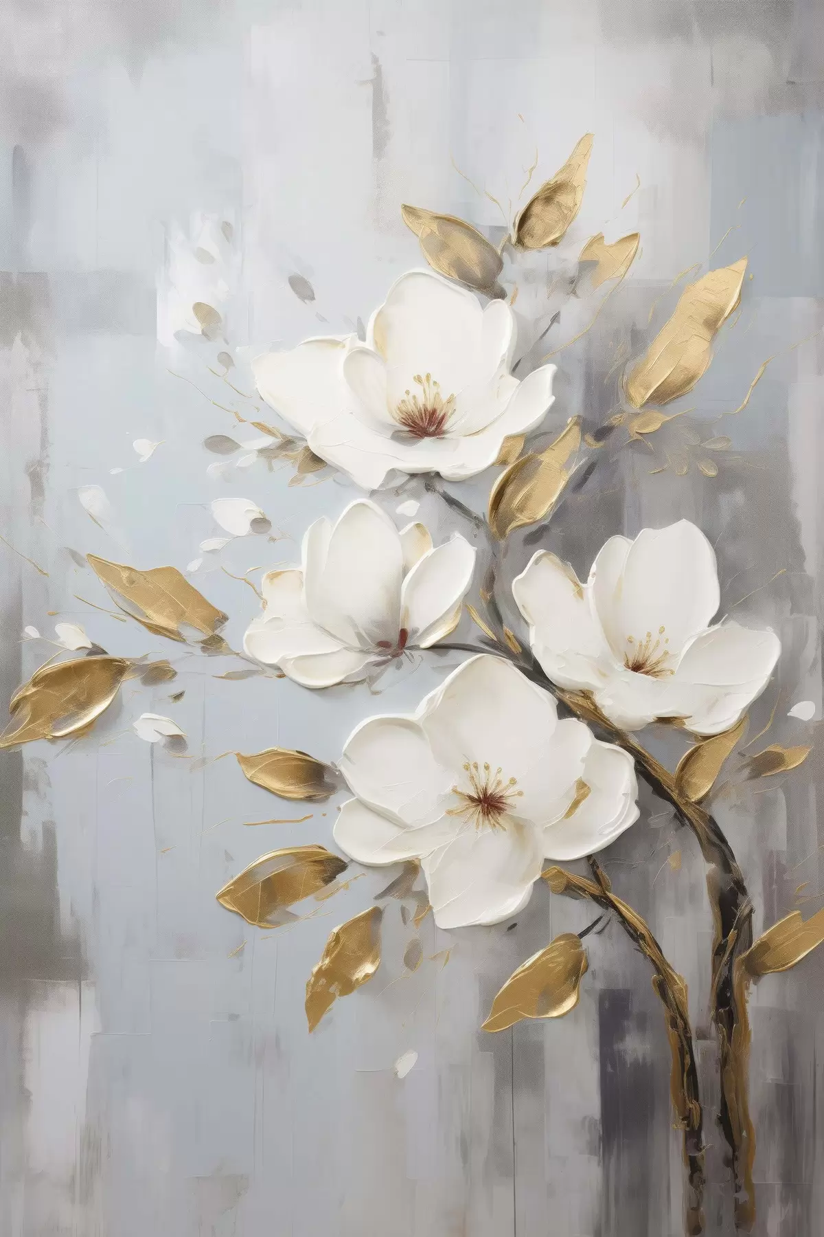 Glezna Zariņš ar baltiem ziediem un dzeltenīgi oranžām lapām s45692