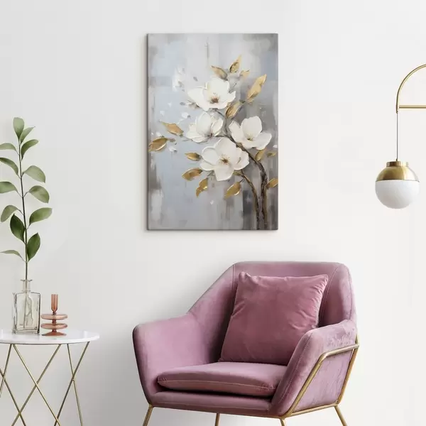 Glezna Zariņš ar baltiem ziediem un dzeltenīgi oranžām lapām s45692