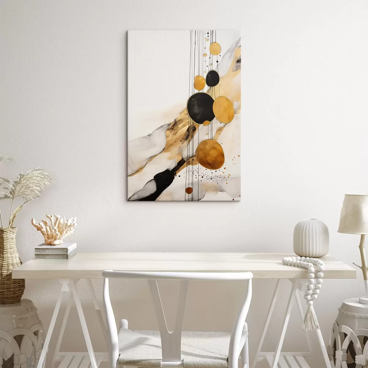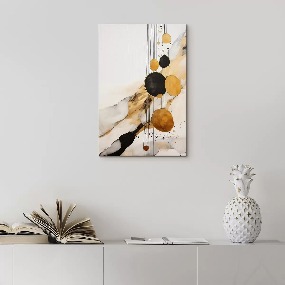 Glezna Abstraktie oranži un melni apļi uz gaiša fona Nr s45693