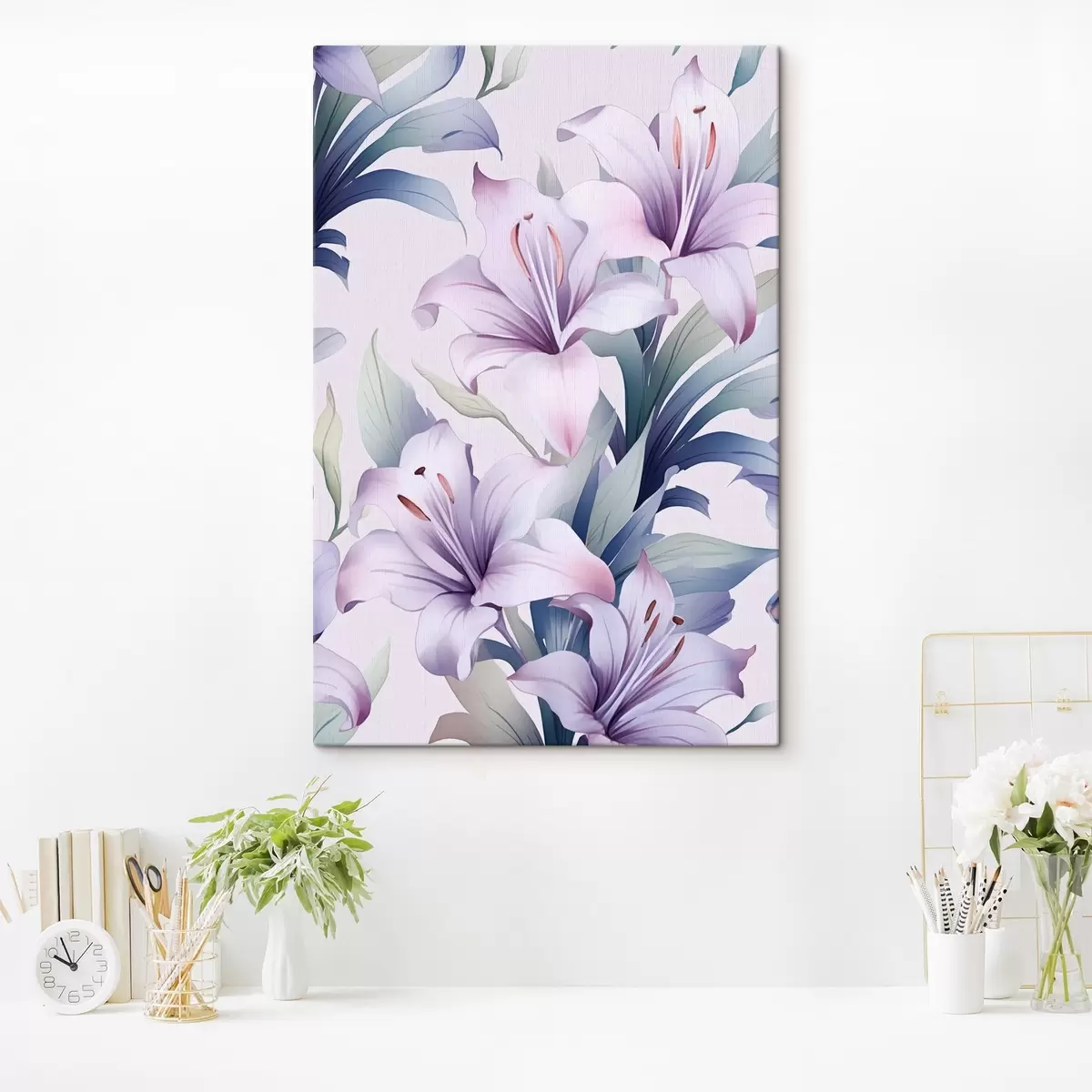 Glezna Lielas rozā-violetas lilijas ar zaļām lapām Nr s45698