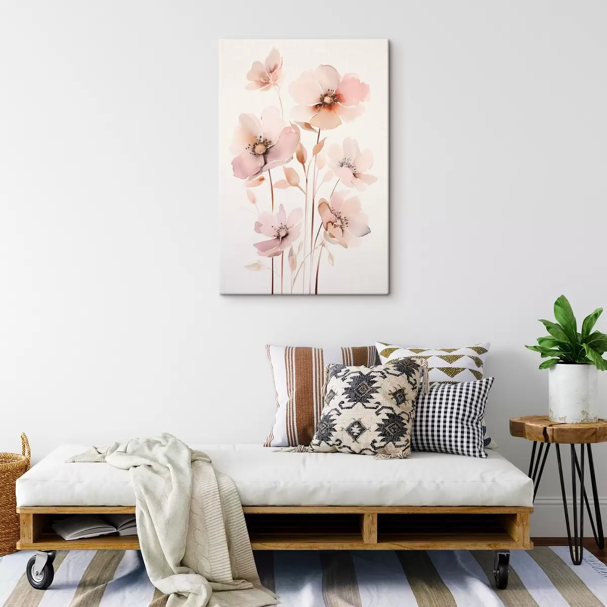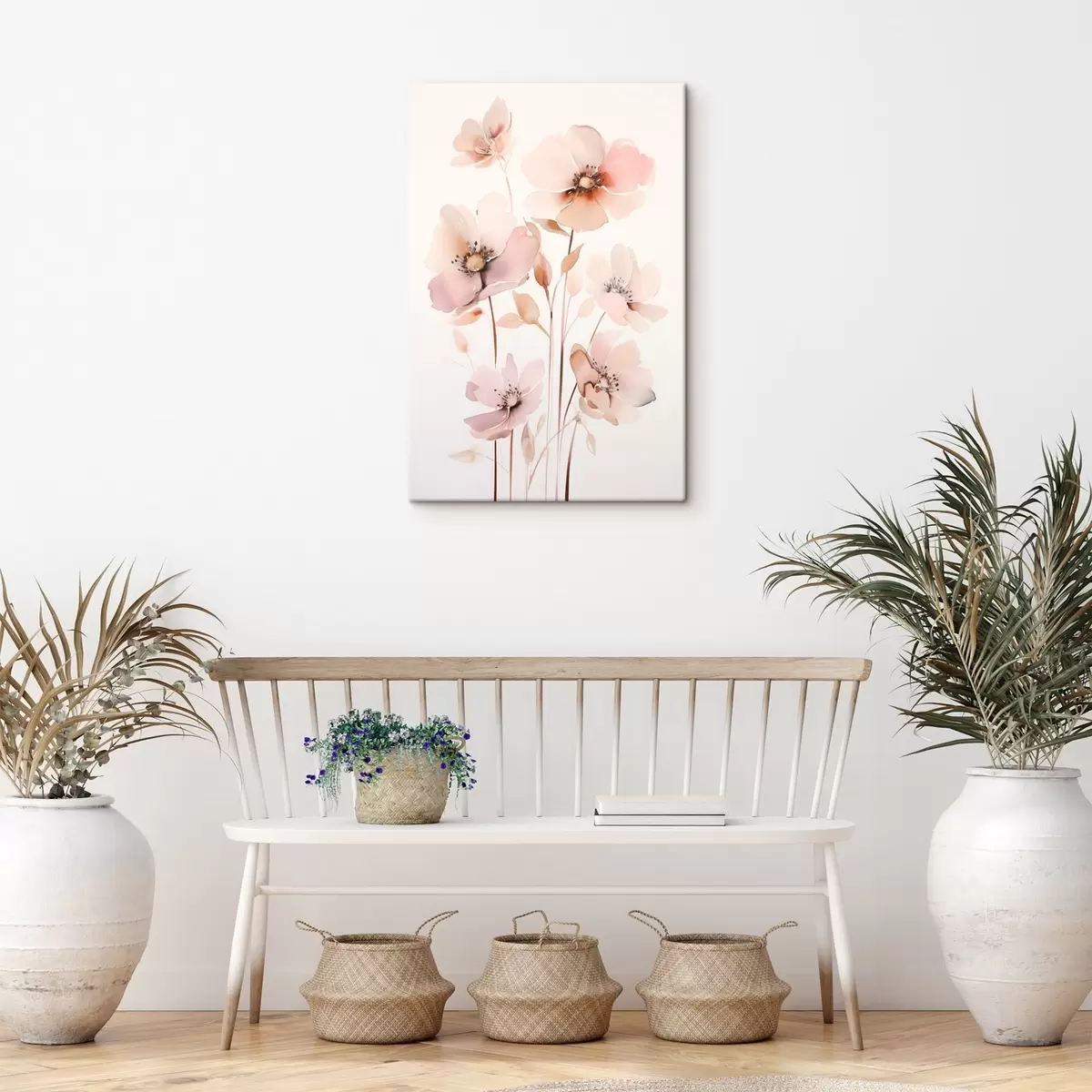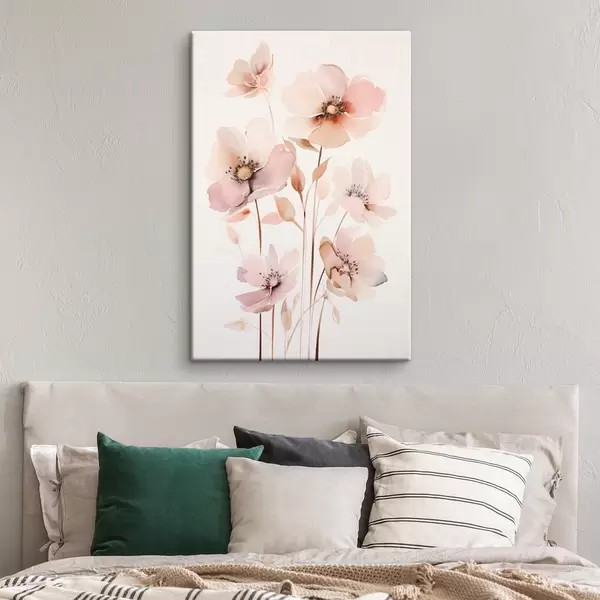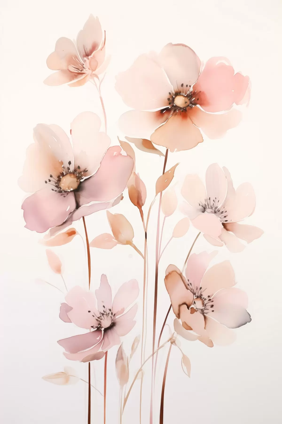 Glezna Akvareļu rozā ziedi uz plāniem kātiņiem s45701