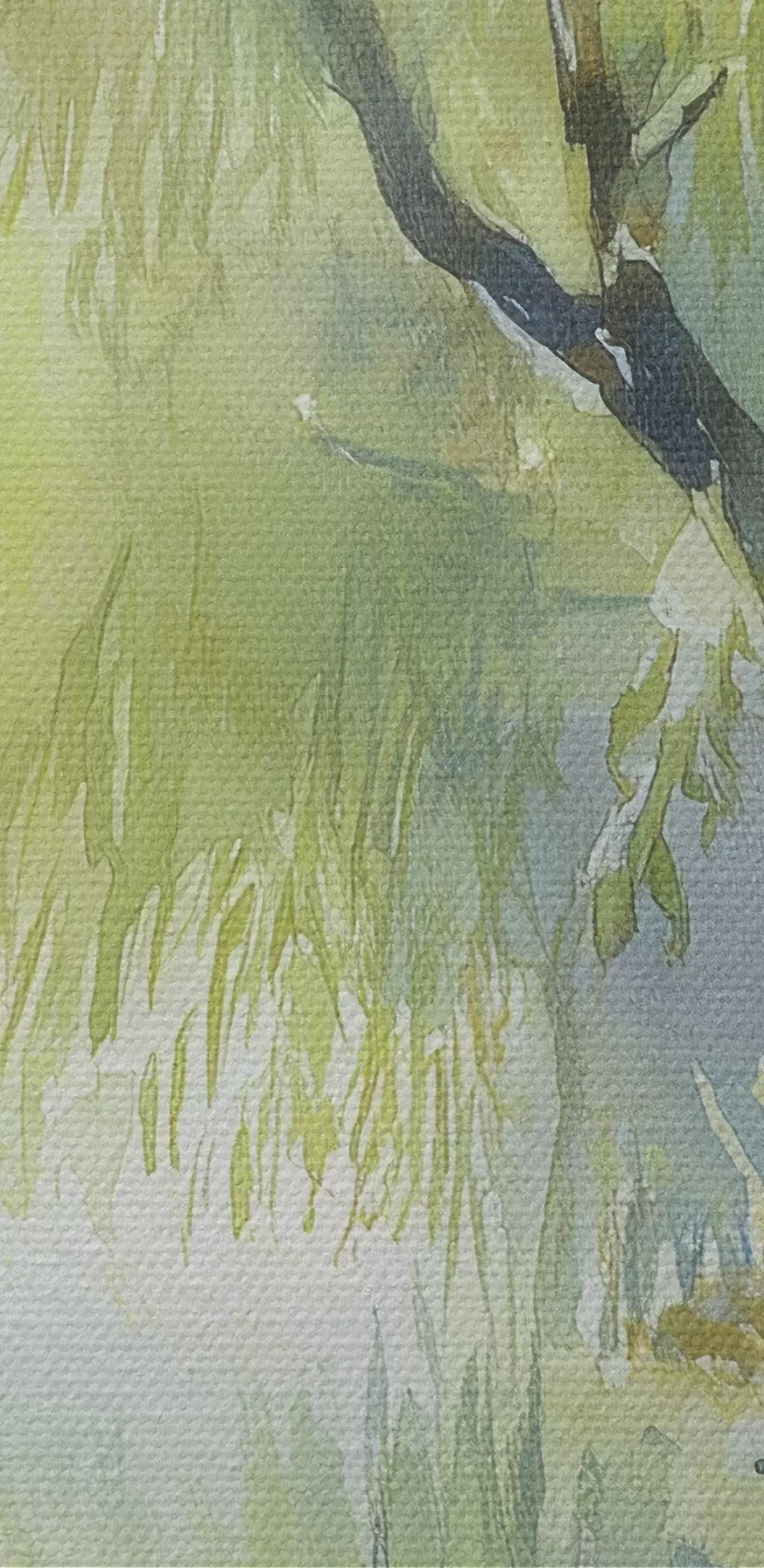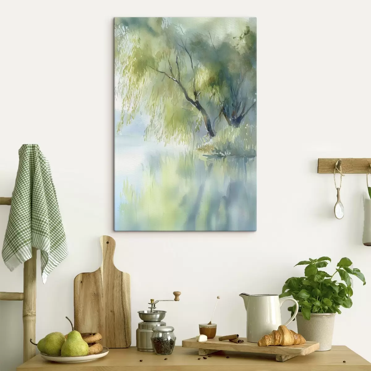 Glezna vītols ezera krastā akvareļa stilā s45715