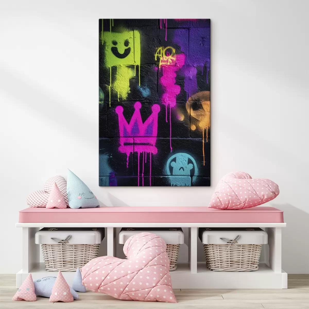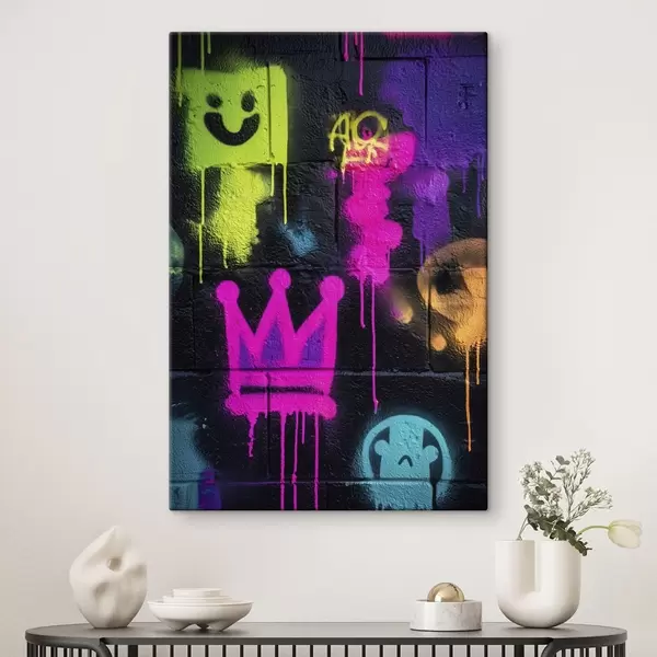 Glezna spilgti ielu grafiti uz tumša fona Nr s45717