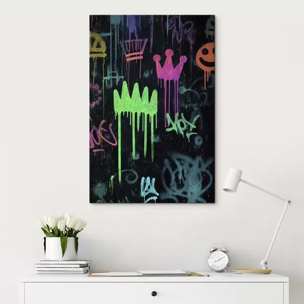 Glezna spilgti ielu grafiti uz tumša fona Nr s45718