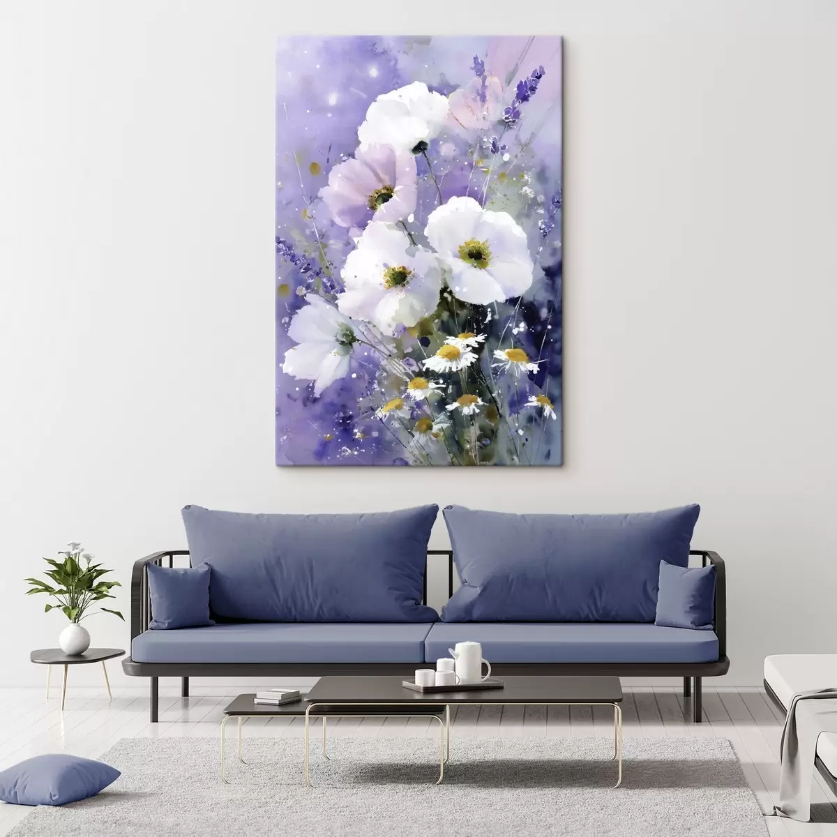 Glezna akvareļu pušķis violetos un baltos toņos s45719
