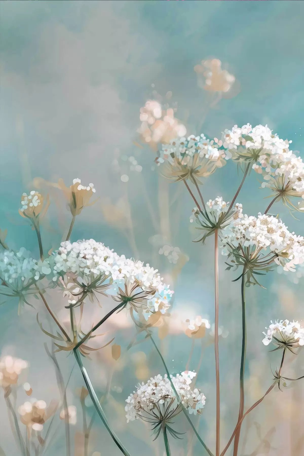 Glezna Karalienes Annes mežģīnes ziedi akvareļa stilā uz zila fona Nr s45721