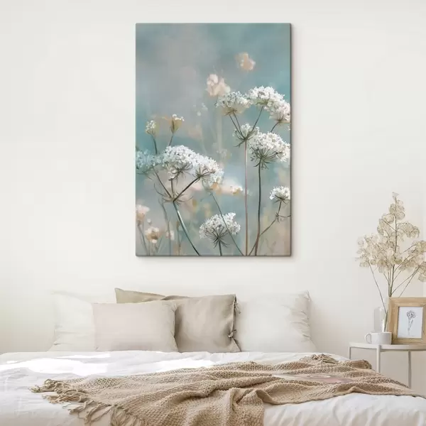 Glezna Karalienes Annes mežģīnes ziedi akvareļa stilā uz zila fona Nr s45721
