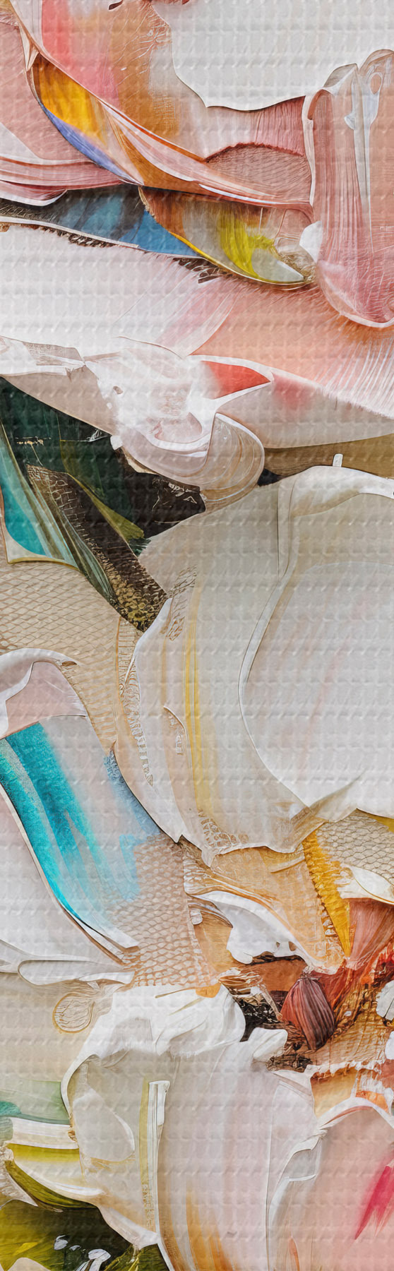 Smalkais diegu pinums uz šī audekla atgādina profesionālu mākslinieku audeklu virsmu.