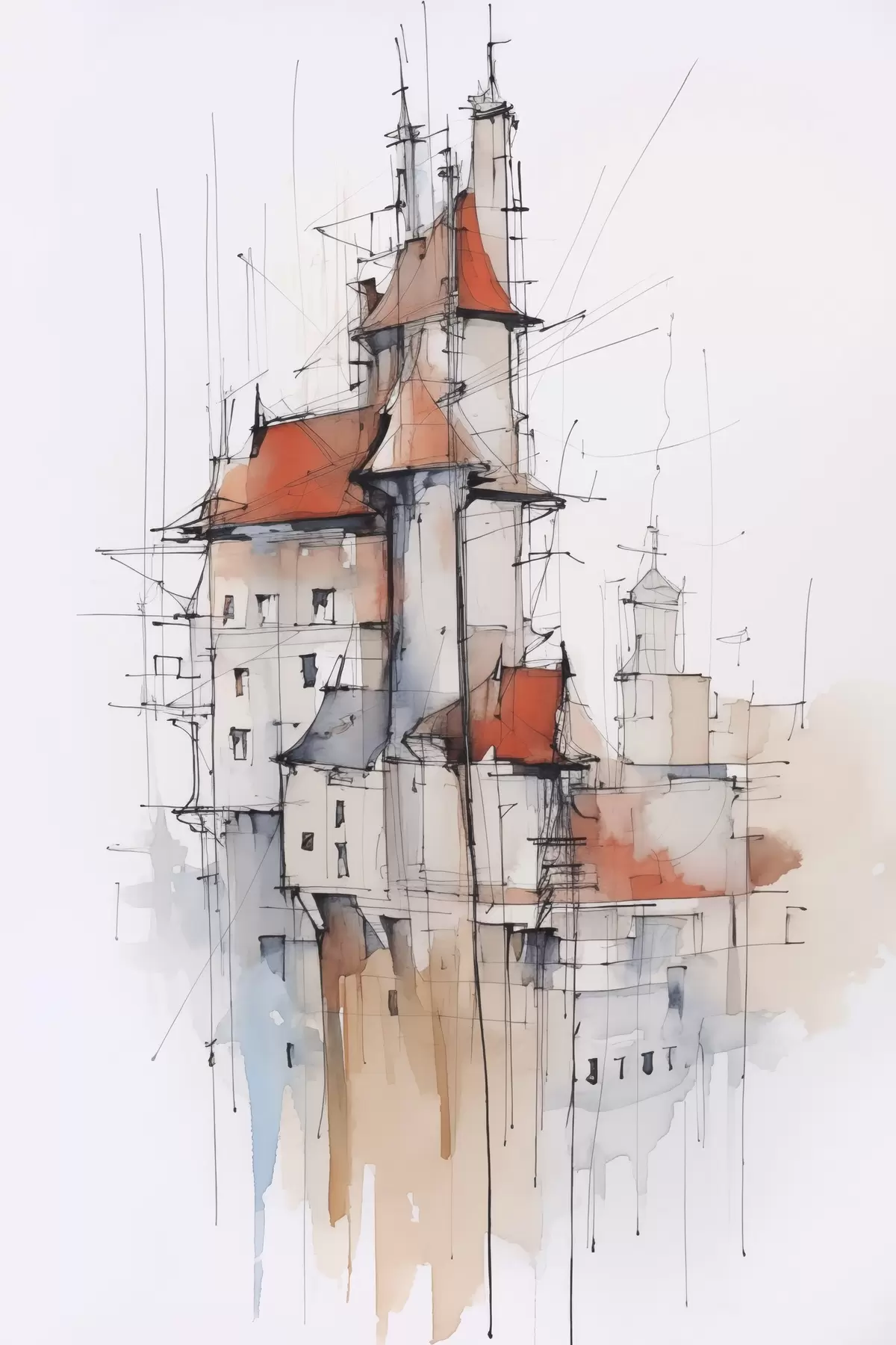 Glezna Māju imitācijas skice un akvareļgleznojums Nr s45764