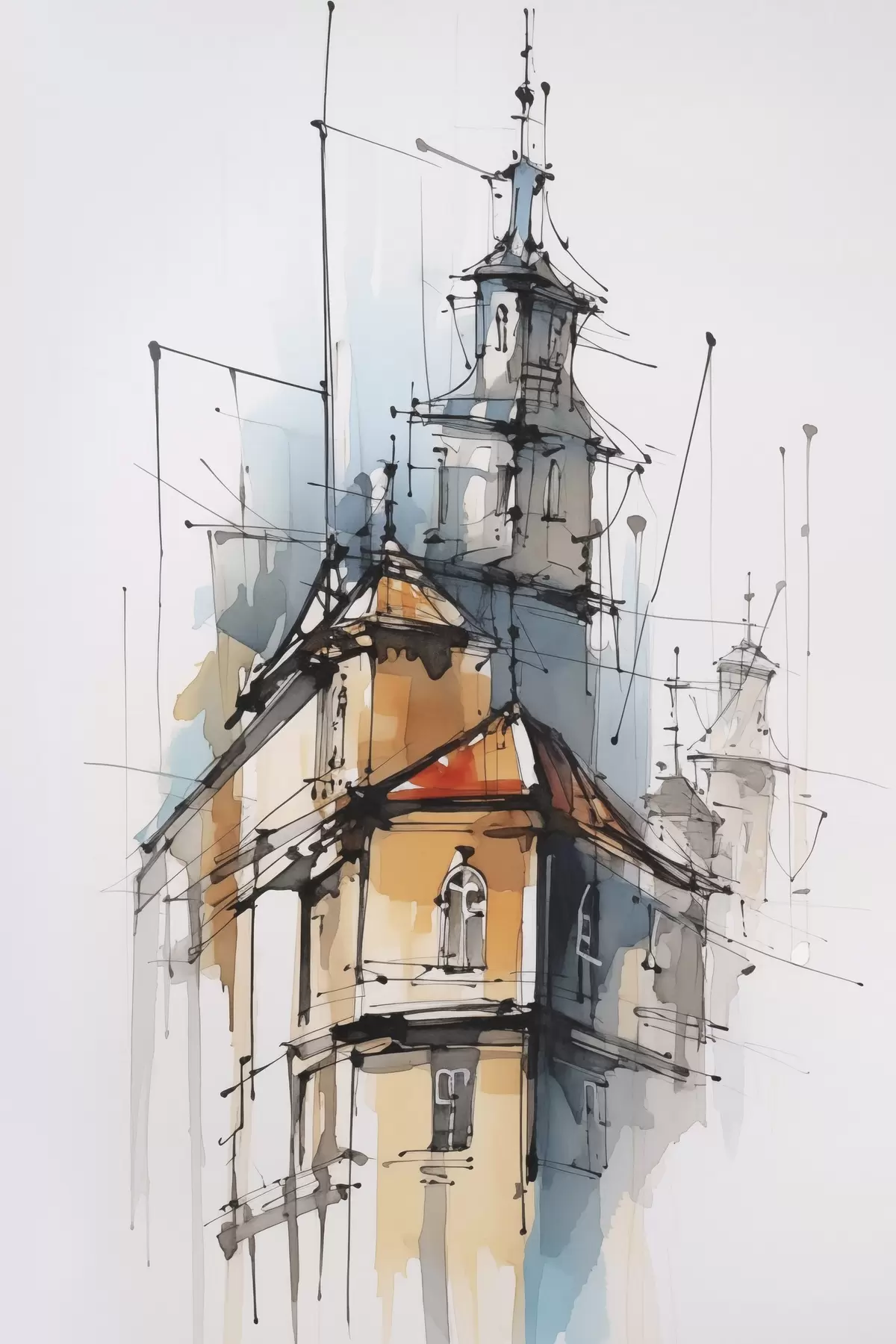 Glezna Māju imitācijas skice un akvareļgleznojums Nr s45765
