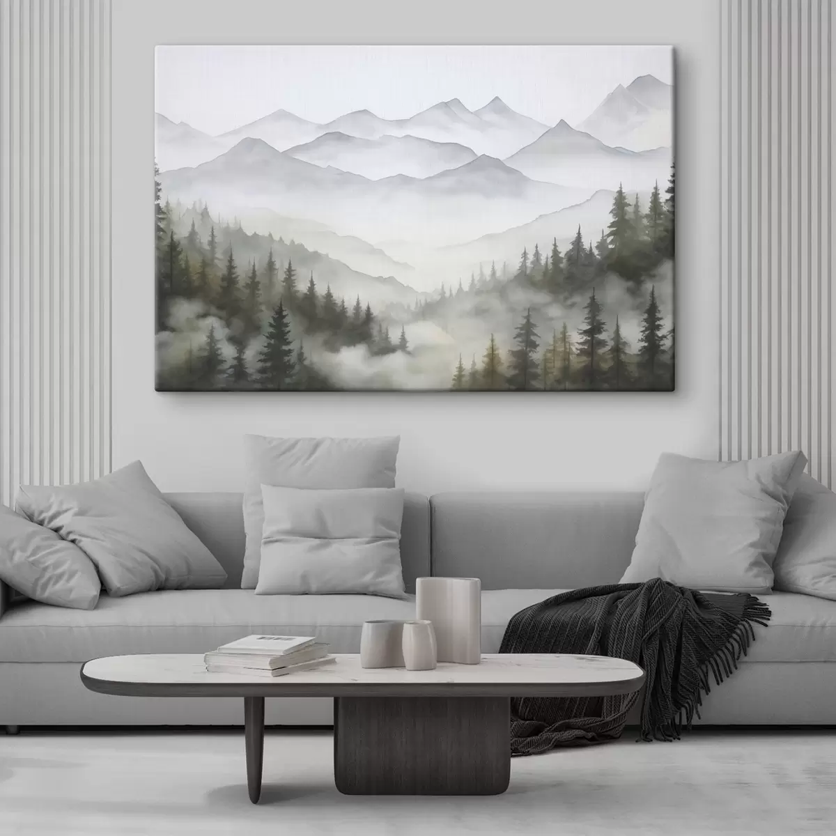 Glezna Mežs miglā priekšā kalniem Nr s45774