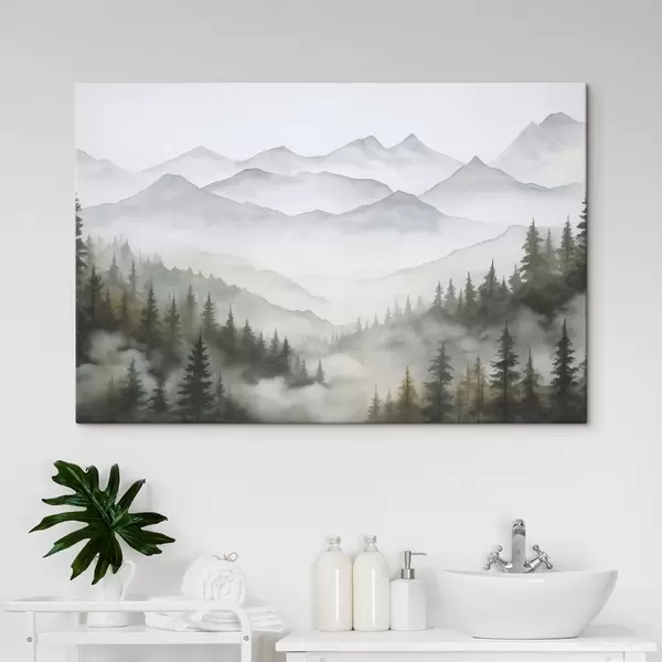 Glezna Mežs miglā priekšā kalniem Nr s45774