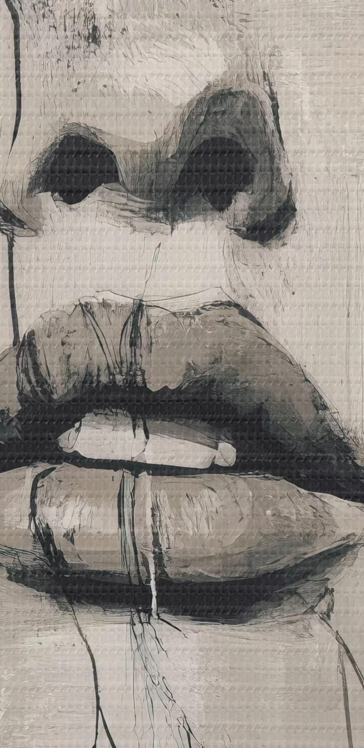 Smalkais diegu pinums uz šī audekla atgādina profesionālu mākslinieku audeklu virsmu.