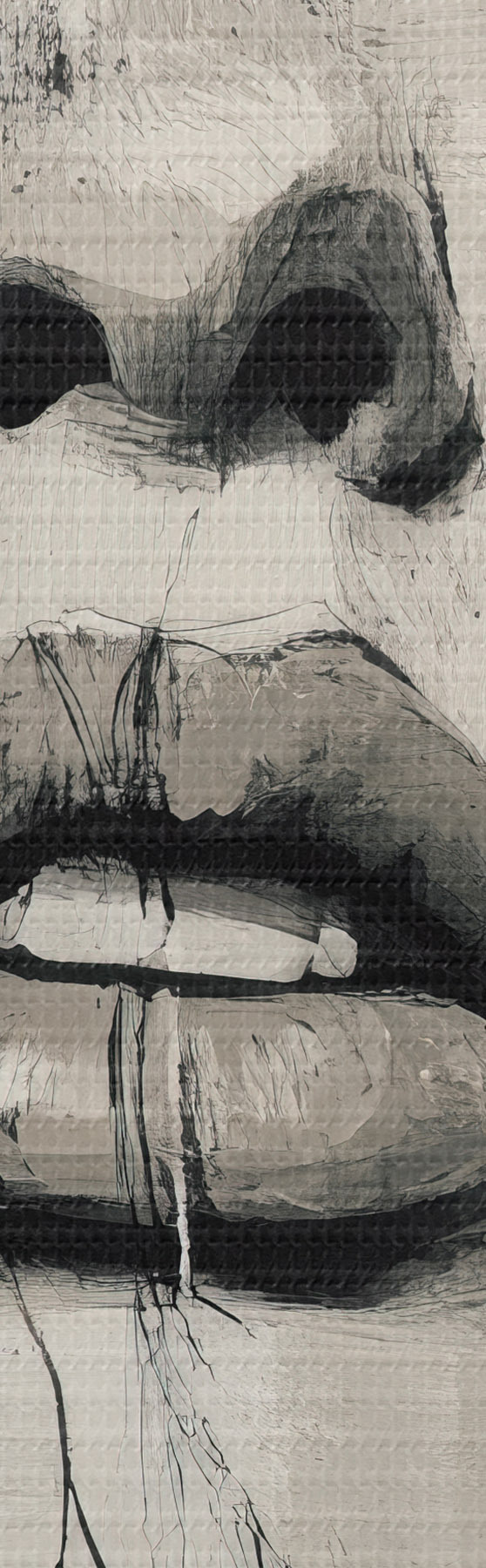 Lai izstieptu audeklu uz nestuvēm, nebojājot attēlu, mēs izmantojam spoguļattēlu.