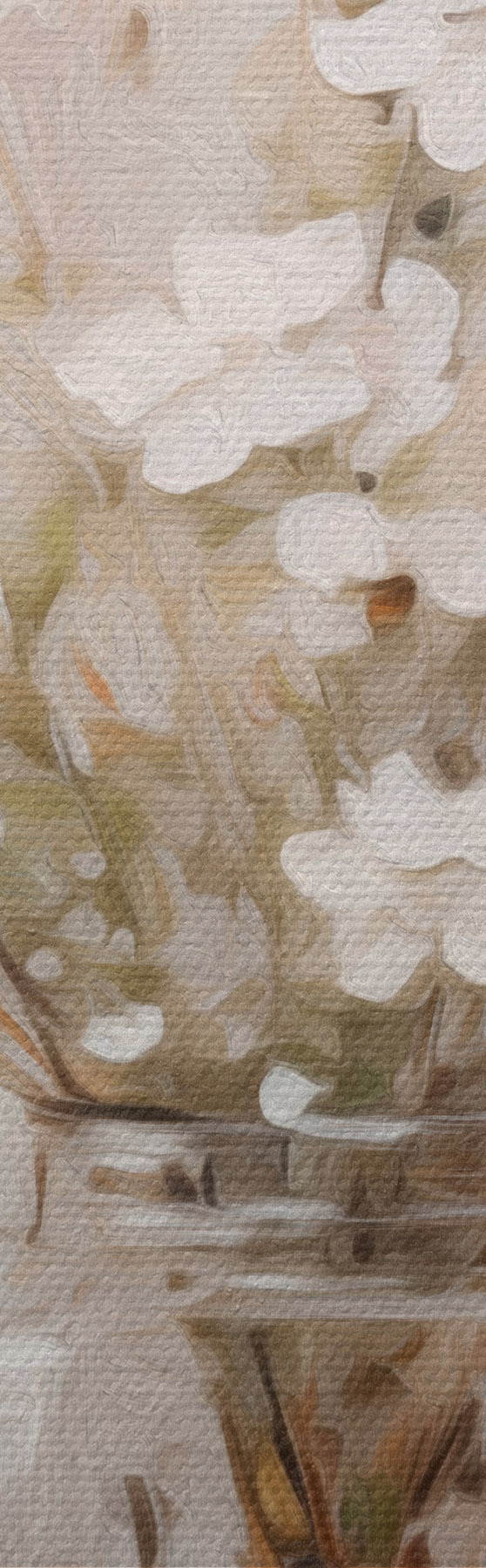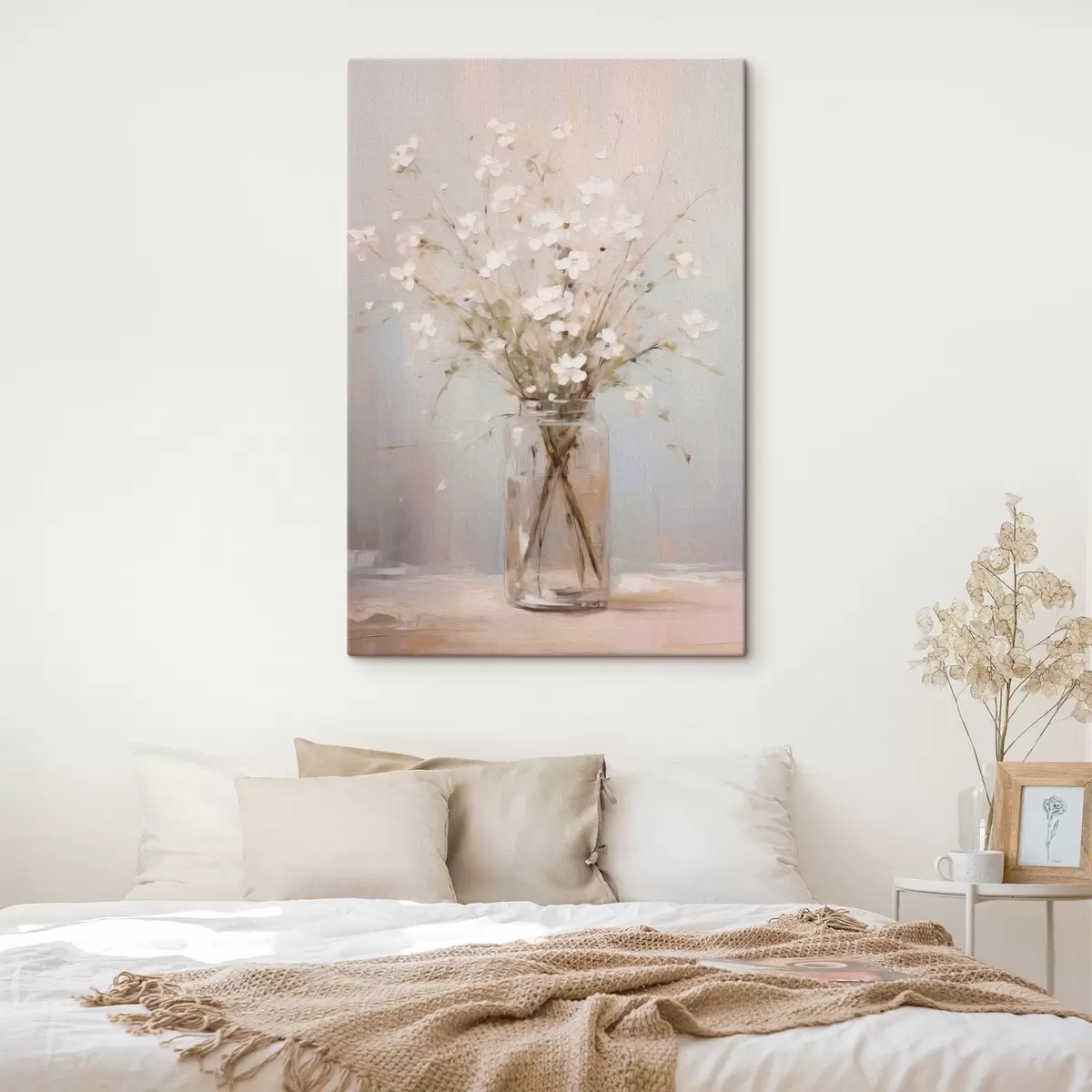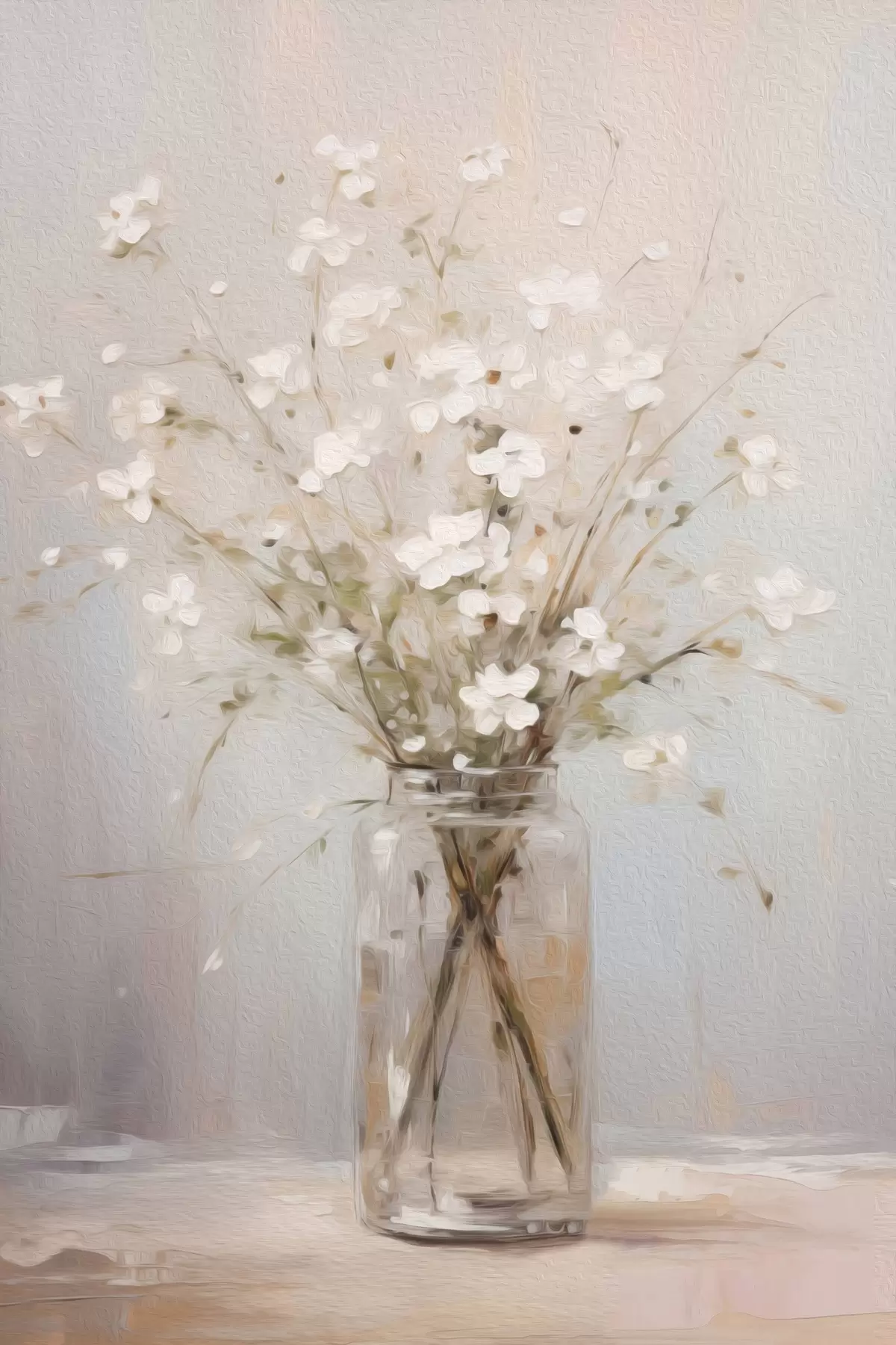 Glezna Baltu ziedu pušķis caurspīdīgā stikla vāzē Nr s45814