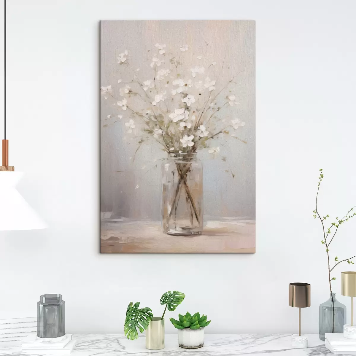 Glezna Baltu ziedu pušķis caurspīdīgā stikla vāzē s45814